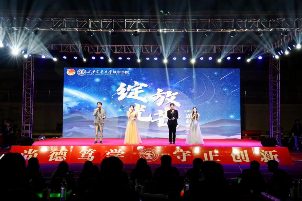 开场歌曲一首《绽放》瞬间点燃了晚会的氛围,同学们高亢、充满活力的声音表达了对青春的热爱和激情,赢得了观众的阵阵欢呼。伴随一支极具陕北民俗特色的腰鼓舞蹈《鼓舞盛世》和龙狮队的两头小狮子闪亮登场,拉开了第一篇章“城约而至”的序幕。计算机系王艺博老师和东304乐队带来的《再见杰克》动感旋律,激昂歌声,燃起现场的火热氛围。一支以莲花为特色的古典舞《沁莲》结合了中国传统文化与现代舞蹈形式,给观众带来一种自然、优美的表演艺术体验,说唱歌曲《we we》和充满艺术感与浪漫的拉丁舞《京韵》表演令人热血沸腾,一次又一次将晚会推向高潮。