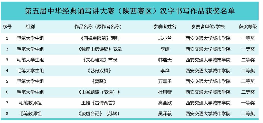 据悉,本次大赛共评选出汉字书写大赛(陕西赛区)一等奖81个、二等奖137个,三等奖156个,优秀奖192个、优秀指导教师58名。