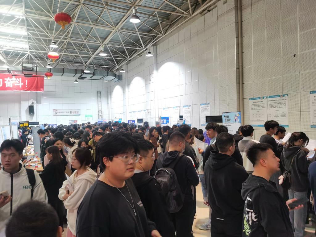 招聘会现场,同学们求职热情高涨、人头攒动、气氛热烈。毕业生结合自身目标和企业需求,与招聘人员深入交流,咨询关切的问题。
