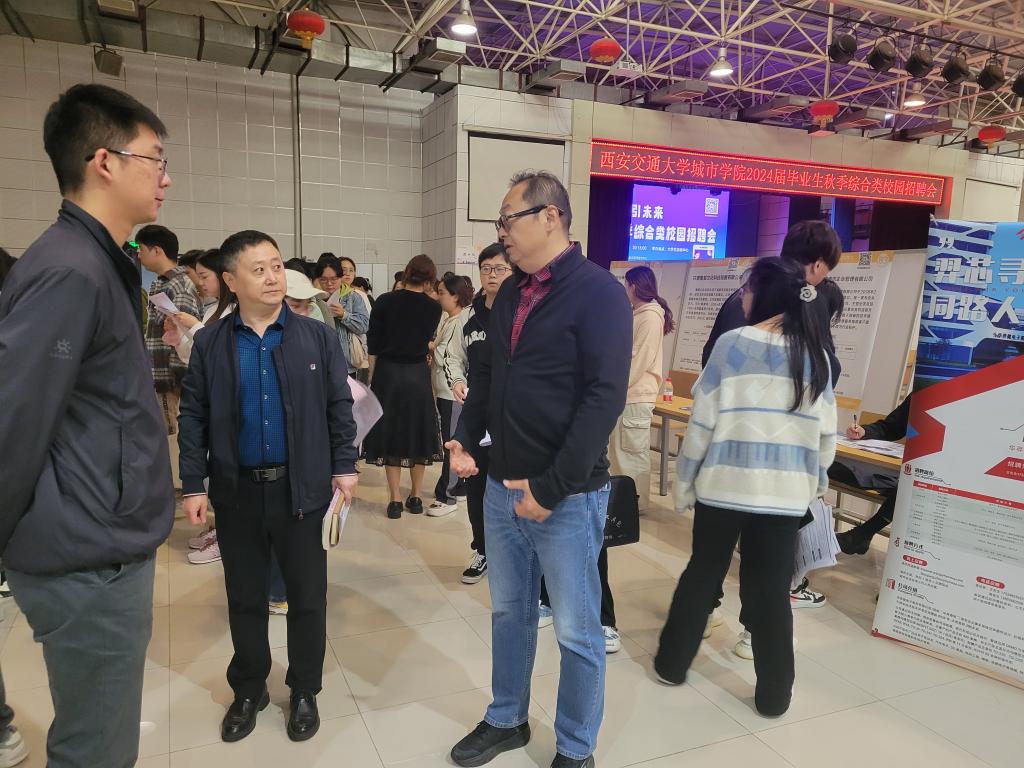为高质量推进学校2024届毕业生就业工作,抢抓秋季校园招聘黄金期,10月25日,学校在大学生活动中心举办2024届毕业生秋季综合类校园招聘会。党委书记张爱萍莅临现场指导就业工作,学生服务中心主任辛红伟、副主任吴昊翔、各系学工负责人、就业中心老师及全体2024届毕业班辅导员参加招聘会,深入了解用人单位需求情况,指导毕业生求职应聘。
