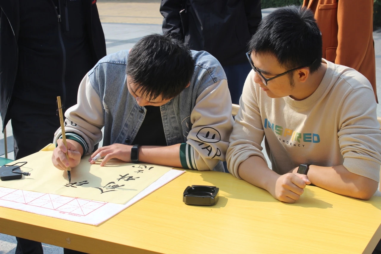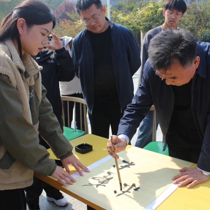 本次活动吸引了众多师生参与。艺术系专业课教师从指法、手法、身法、眼法等基础动作切入,循序渐进、细致耐心地教大家如何执笔、运笔并现场进行范写。活动现场,陈光德院长挥毫“艺术求魂”,勉励大家立德立身,感受书法中的精气神,传承好中华汉字文化的瑰宝。