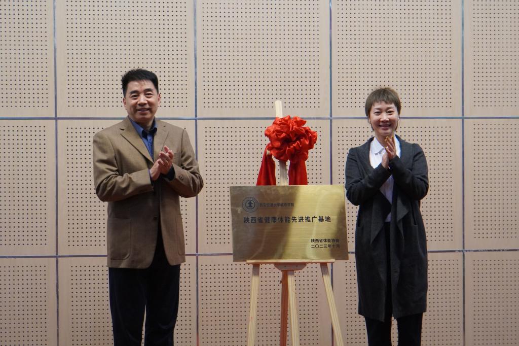 朱旭副院长表示,在学院体育部众志成城、齐心协力下,得到陕西省体能协会的认可并获此殊荣实属不易。学院在本学期的体育教学中,把体育课成绩的20%作为课外锻炼的分数来激励学生们在日常养成终身体育锻炼意识。本次教学改革也初见成效,运动氛围明显加强,校园内展现出集体运动的热潮。此外,学院运动队在全国和陕西省比赛中捷报频传。此次“陕西省健康体能先进推广基地”的揭牌,也标志着学院健康体能工作又迈上了一个新台阶。他希望体育部今后在学院教学育人环节以及各项荣誉的获得中能够发挥示范引领作用。