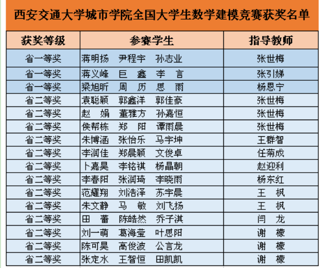 近日,2023年“高教社杯”全国大学生数学建模竞赛成绩揭晓,yl7703永利官网在本次竞赛中获佳绩,共获得本科组陕西赛区一等奖3项、陕西赛区二等奖13项。