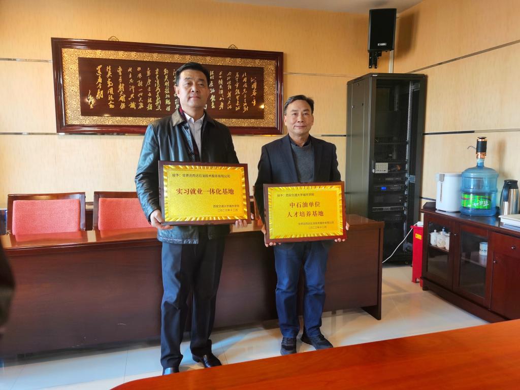 为加强校企联合,促进资源优势互补,12月21日,我校与甘肃迅而达石油技术服务有限公司在行政楼608会议室举行校企合作签约授牌仪式。校长助理张学堂、电气信息学院院长赵录怀、学生工作处处长辛红伟、机械工程学院副院长王国平、土木建筑工程学院副院长黎莹及三个学院相关学生工作负责人,甘肃迅而达石油技术股份有限公司董事长杜龙山、主任于天明,西安办事处负责人闫周磊、经理张晓东出席仪式。会议由学生工作处副处长吴昊翔主持。