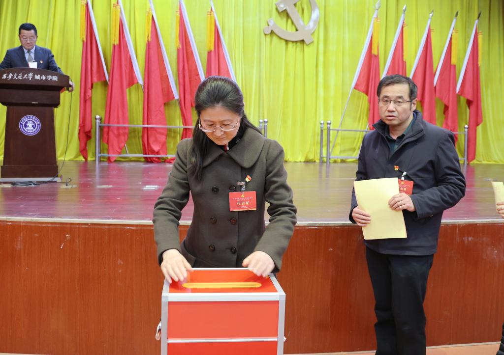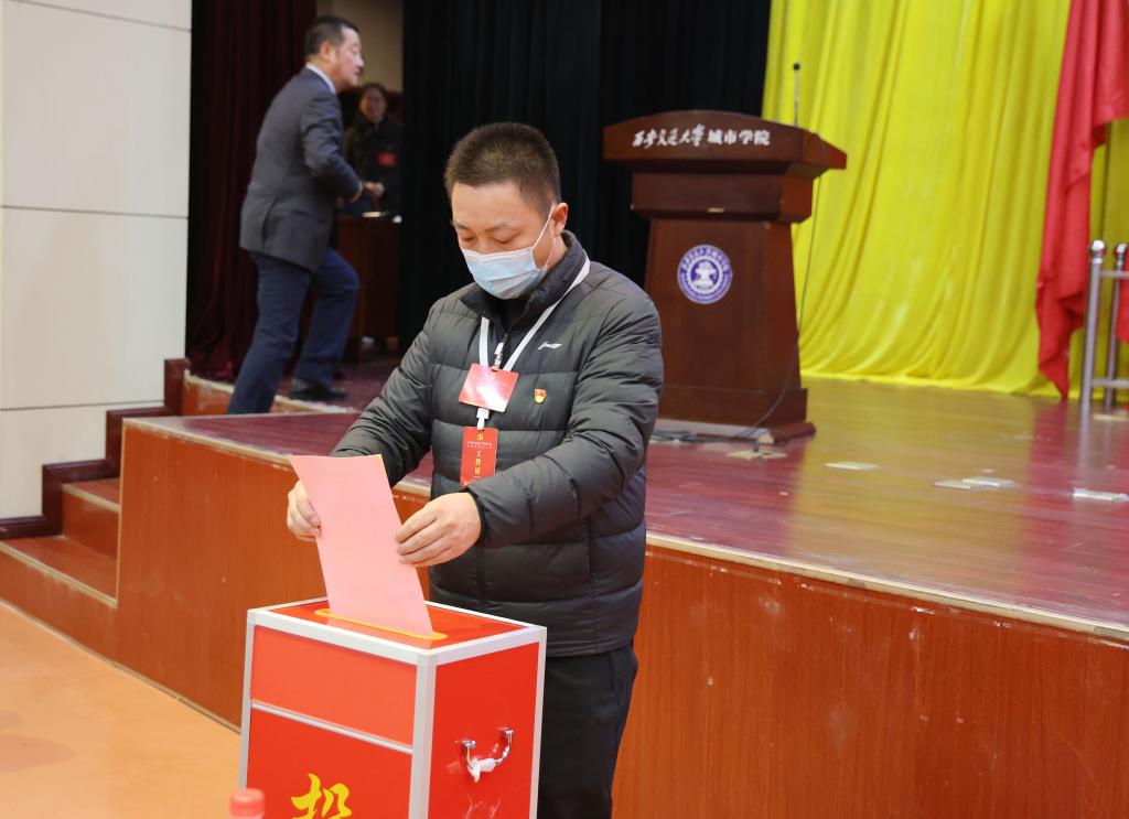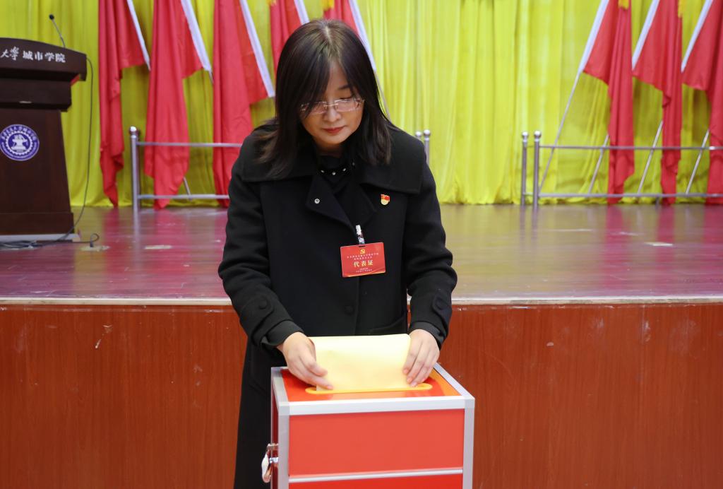 工会主席冀祥主持大会选举环节。参会党代表以无记名投票的方式选举产生了学院新一届党委委员及纪委委员。城市学院第四届党委会委员为(以姓氏笔画为序)王梅芳、许恩奇、辛红伟、张爱萍、陈书荣、陈光德、岳华海、袁晓蕾、姬志国;第四届纪律检查委员会委员为(以姓氏笔画为序)许大炜、杨莉、张福全、陈晋、袁晓蕾。