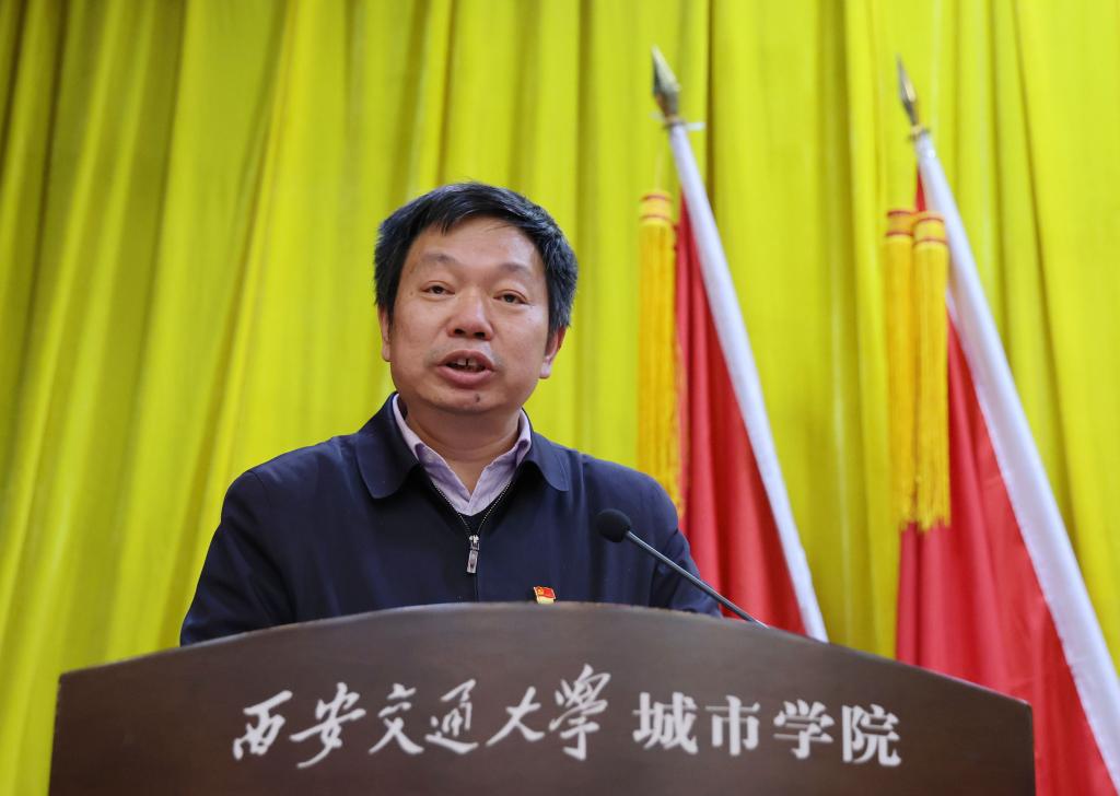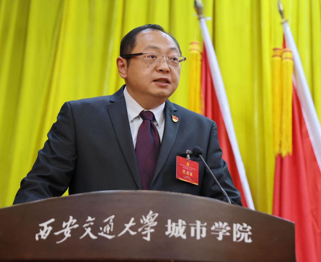 西安交通大学党委常委、副校长严俊杰在讲话中指出,城市学院召开第四次党员代表大会,回顾历史、总结成绩、研判形势、谋划发展,选举党委、纪委班子,具有承前启后、凝心聚力、共谋发展的重要意义。他代表西安交通大学向大会的胜利召开、向当选的各位委员表示祝贺,向全体与会代表和师生员工致以诚挚的问候!他表示,近年来,城市学院党委班子坚持以高质量党建引领事业高质量发展,团结带领广大党员和师生锐意进取,埋头苦干,在党的领导、人才培养、社会服务等方面均取得了一定的成绩。他指出,党代会是学院事业发展过程中的一件大事,选举产生新一届委员会,确定新的发展目标任务,开启学院发展新的征程。他就学院下一步工作提出四点希望:一是要坚定不移加强政治建设;二是要坚持不懈培育时代新人;三是要凝心聚力推动事业发展;四是要守正创新强化组织建设。相信学院全体师生员工一定能够在学院党政班子的团结带领下,心怀“国之大者”,弘扬西迁精神,自信自强、守正创新,踔厉奋发、勇毅前行,营造新气象、展现新面貌、争取新进步、迈上新台阶,为加快建设国内一流、特色鲜明的高水平应用型大学做出新的更大贡献。