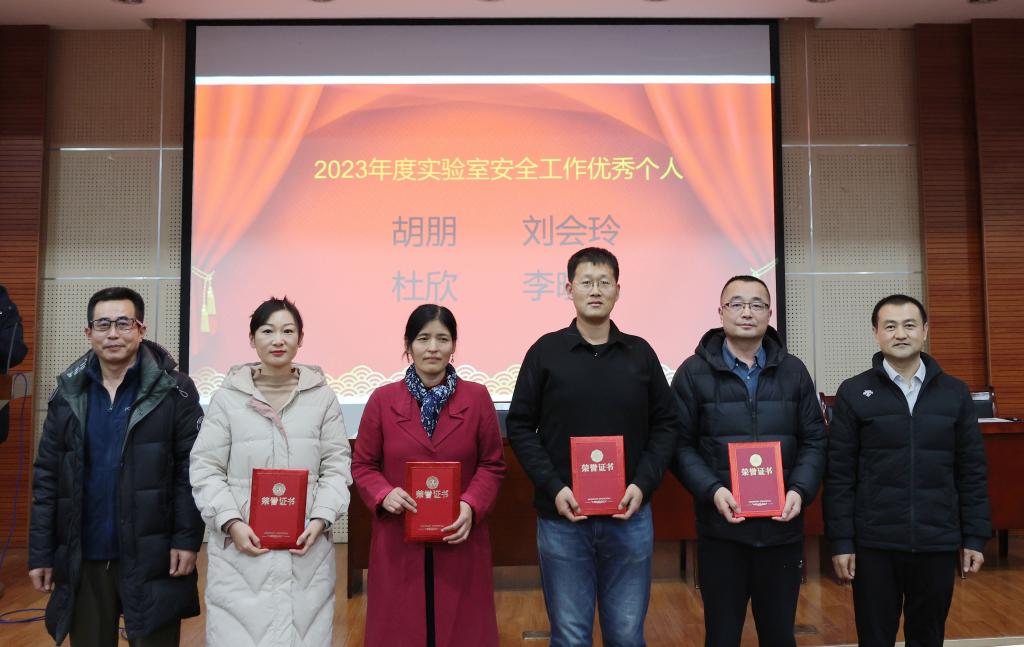 大会伊始,教务处处长唐玉海介绍了召开实验室安全会议的背景和意义。由实验室安全工作领导小组办公室冯鹏林从实验室安全建设基本情况、安全隐患整改工作向大会作2023年度实验室安全工作汇报。随后,唐玉海处长宣读《yl7703永利官网关于表彰2023年度实验室安全工作优秀个人的表彰决定》,陈书荣、岳华海副校长为荣获实验室安全工作优秀个人称号的胡朋、杜欣、李晓帆、刘会玲四位教师颁发荣誉证书。