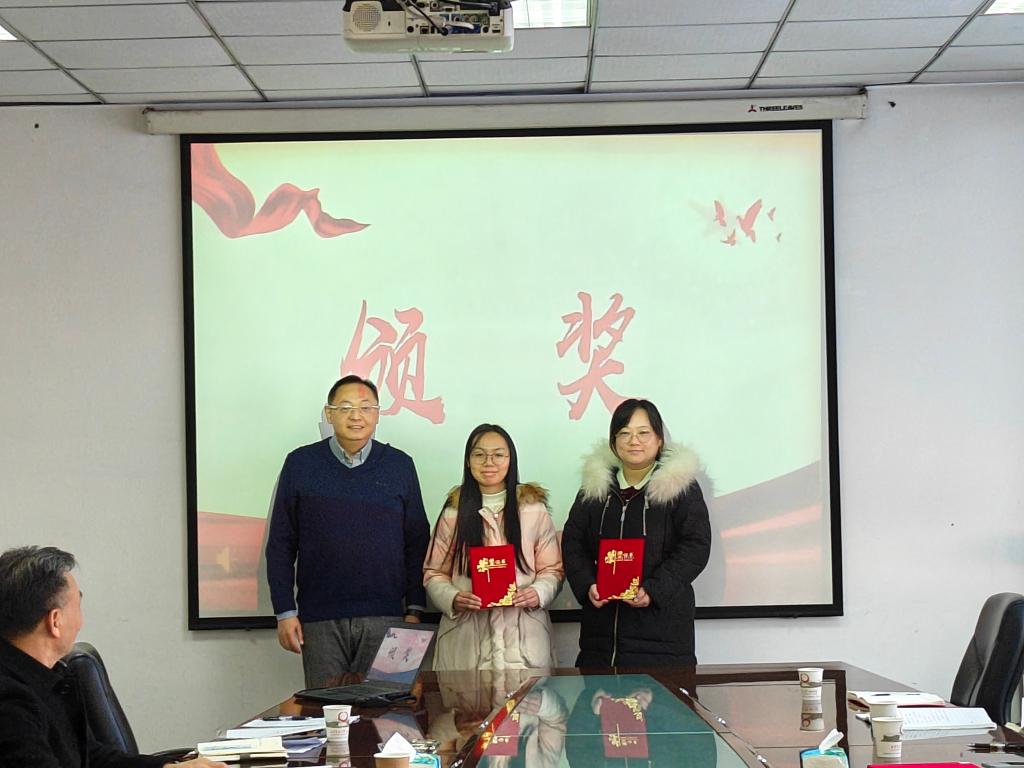 党委书记张爱萍及大学生党总支书记张学堂为“五佳党日”优秀支部及年终考核为“好”的支部颁发荣誉证书。征途漫漫,唯有奋斗,希望受到表彰的学生党支部继续发挥榜样作用,以更加饱满的热情和积极的态度,投身于学校的各项工作中,促进学校高质量发展新局面。