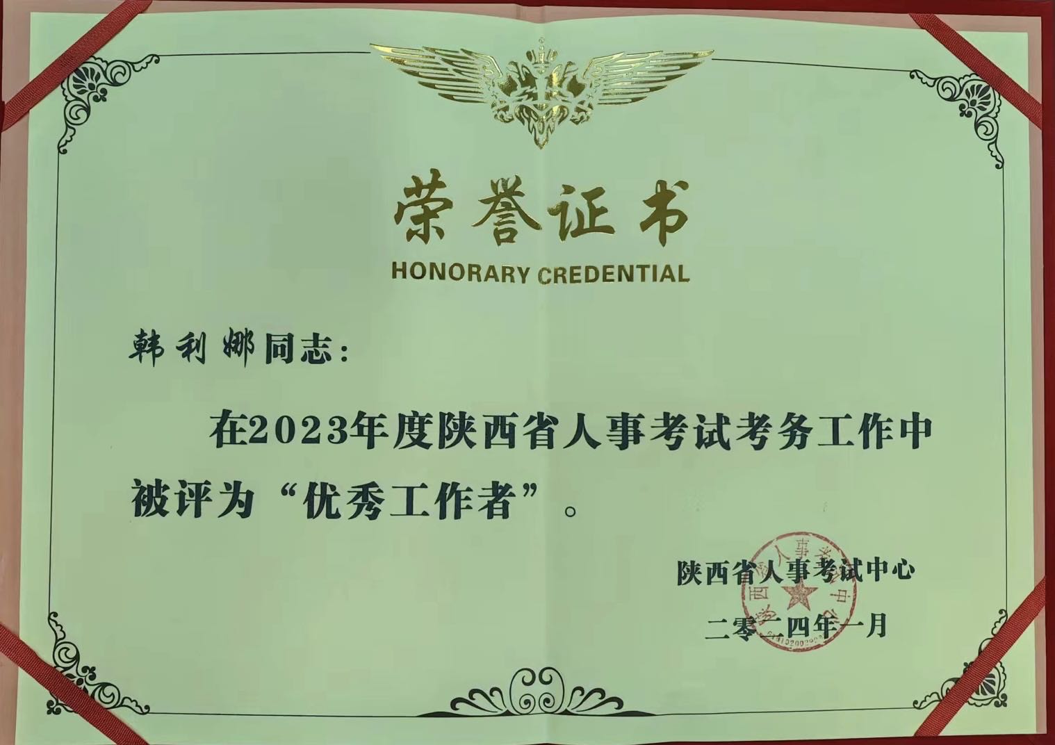 近日,陕西省人事考试中心公布了陕西省2023年优秀考点评选结果,yl7703永利官网被评为“陕西省人事考试优秀考点”,我校继续教育与培训中心韩利娜被评为“优秀考务工作者”荣誉称号。