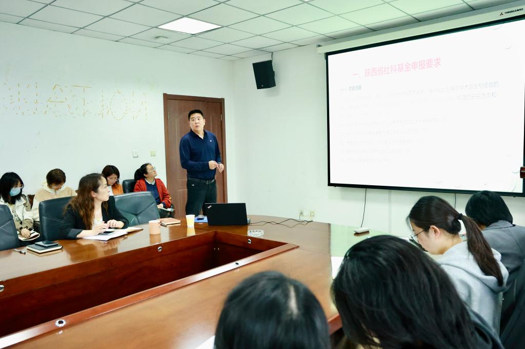 科技处处长助理应晨林结合自身申报项目的经历,对陕西省社科基金申报要求、申报程序及申报、立项、结题过程中的相关问题进行了详细的介绍,通过往年各单位教师申报情况及立项数据,分析了陕西省社科基金项目在选题、申报书撰写等方面应注意的问题。