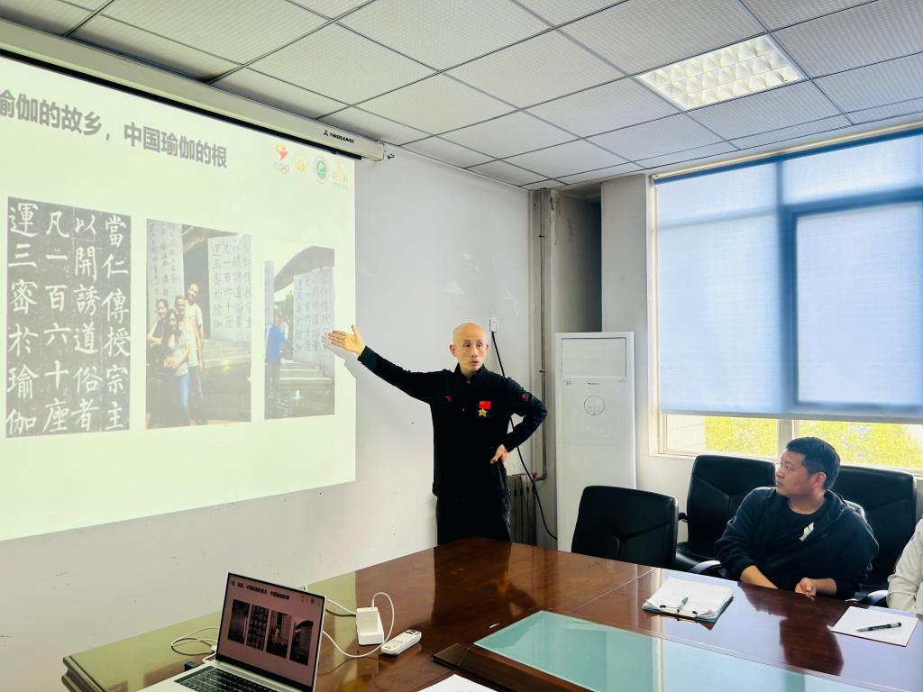 于巴锁主席为仪式致辞,他充分肯定了近年来学校在健身瑜伽方面取得的成绩,并祝贺学校成为陕西省高校中首个,也是目前唯一一个获得健身瑜伽高水平后备人才基地的单位。他对陕西省健身瑜伽协会的发展和职能进行了介绍,并以《健身瑜伽的过去、现在及未来发展趋势》为题为大家进行了分享。他期待协会和学校通力协作,互通有无,发挥各自优势,继续扎根陕西,讲好瑜伽故事,做好瑜伽事情,一起为陕西高校健身瑜伽项目高质量发展做出更大贡献。