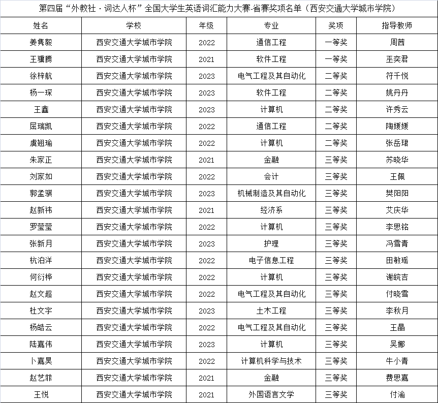 近日,第四届“外教社·词达人杯”全国大学生英语词汇能力大赛在yl7703永利官网落幕。本次大赛旨在通过词汇学习与竞赛相结合的方式,激发学生对英语学习的兴趣,提升英语应用能力,同时推动高校英语在线教学和智慧教学的发展。