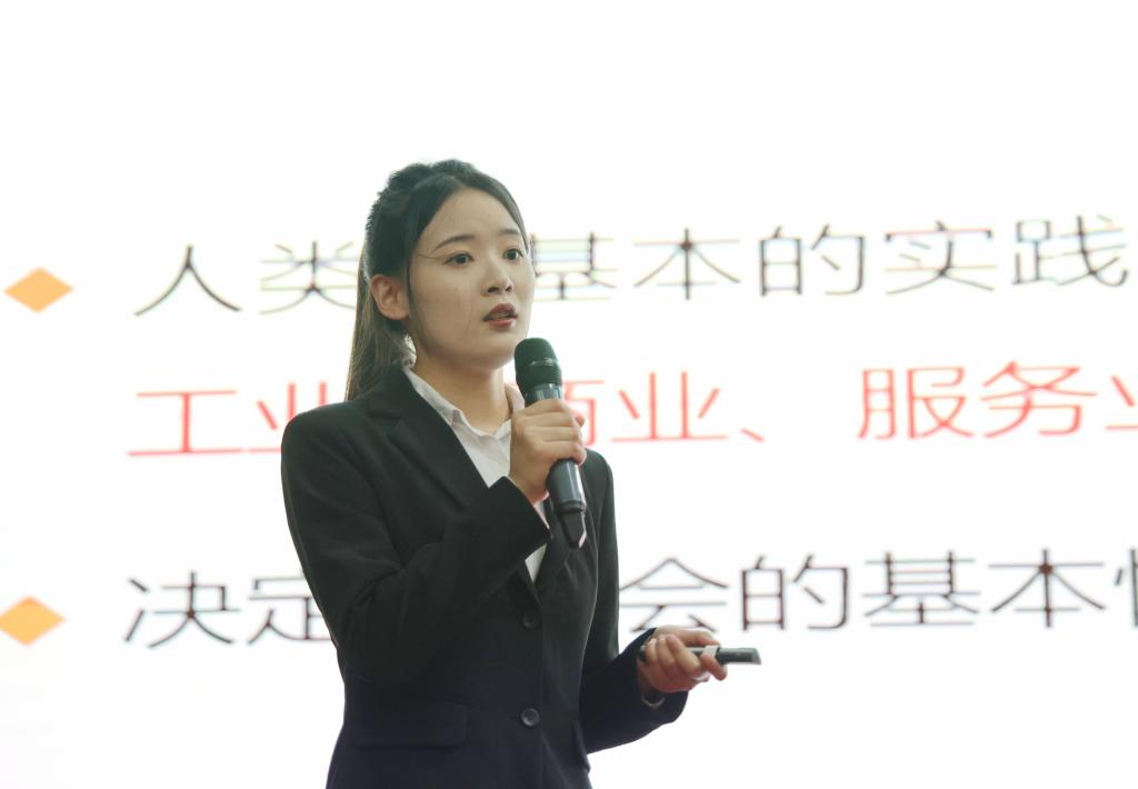 展示活动现场,7支代表团队主讲人围绕“实现共产主义的必然性”“如何认识资本家和劳动者的对立?”“实践形式的多样性”“坚持自立自强 勇攀科技高峰”“中国先进分子为什么选择马克思主义?”“中国梦 复兴路”“坚持人民至上是马克思主义的根本立场”等主题,结合所学专业特长,理论联系实际,图文并茂,展开了生动形象的讲授。