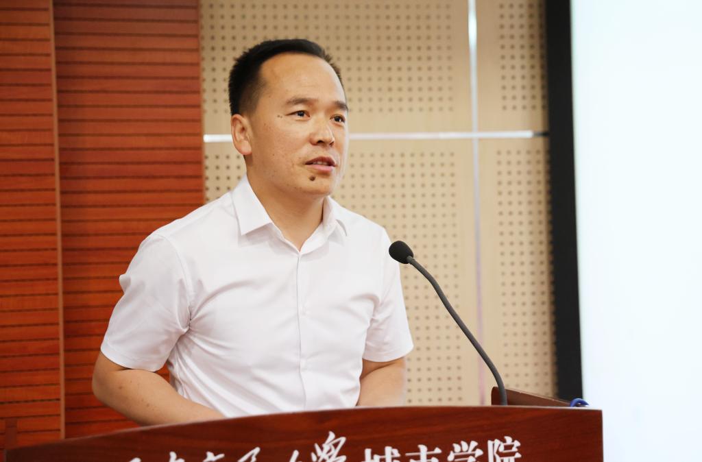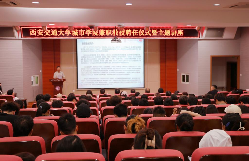 景辉教授表示,手中的聘书既是对自己的信任,更是一份责任和鞭策,今后将积极参与科学研究、平台建设、人才培养等工作,为学校发展贡献力量。接下来,景辉教授以“延安新区建设的实践与思考”为题,从决策背景、规划建设、重点环节、心得体会四个方面进行了主题讲座。他表示,在延安新区规划建设中,通过优化建筑布局结构、加大革命旧址保护、加强技术创新、布局数字经济,致力于绿色发展等推动市政配套、生态环境、公共服务、教育事业等方面的建设规划。他强调,新区建设中运用到的知识和经验与城市学院艺术与设计学院和土木建筑工程学院专业密切相关,希望大家始终坚定理想信念,坚持团队合作,在学习和实践过程中,不仅注重专业学习的高度、精度,也要重视学科的宽度,以适应当今及今后社会复合化、综合性、创新型发展的需求。
