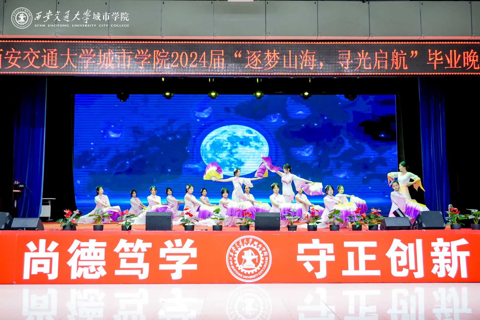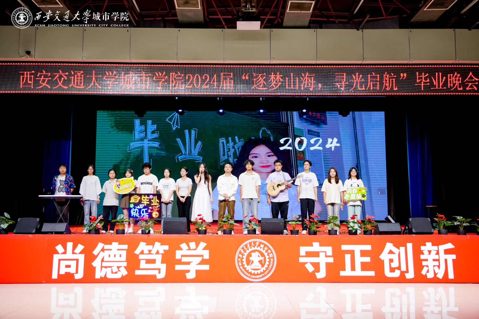 最后,晚会在《友谊地久天长》的美妙旋律中落下帷幕。愿我们与城院的友谊如同这首歌曲所唱,天长地久,永不磨灭,祝愿所有2024届毕业生,毕业快乐,前程似锦,一路生花。
