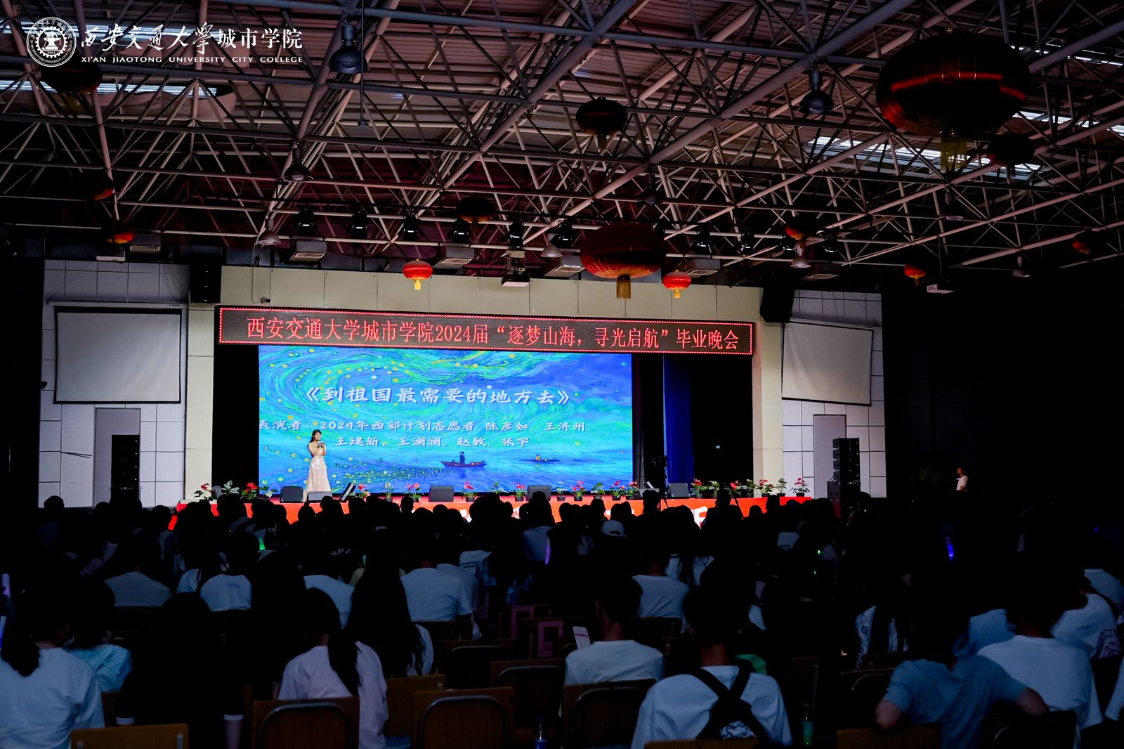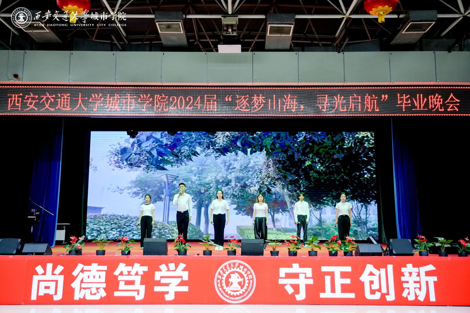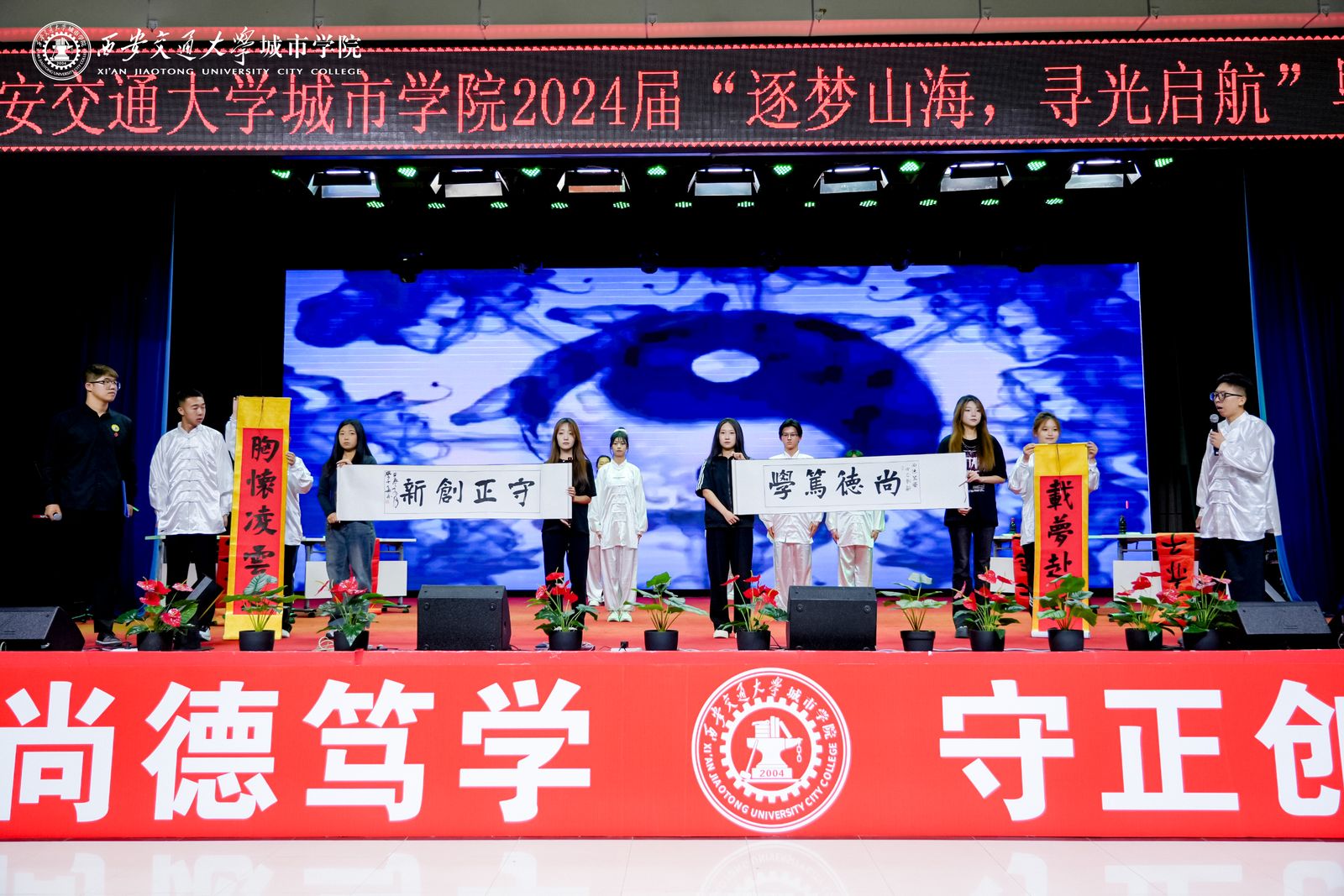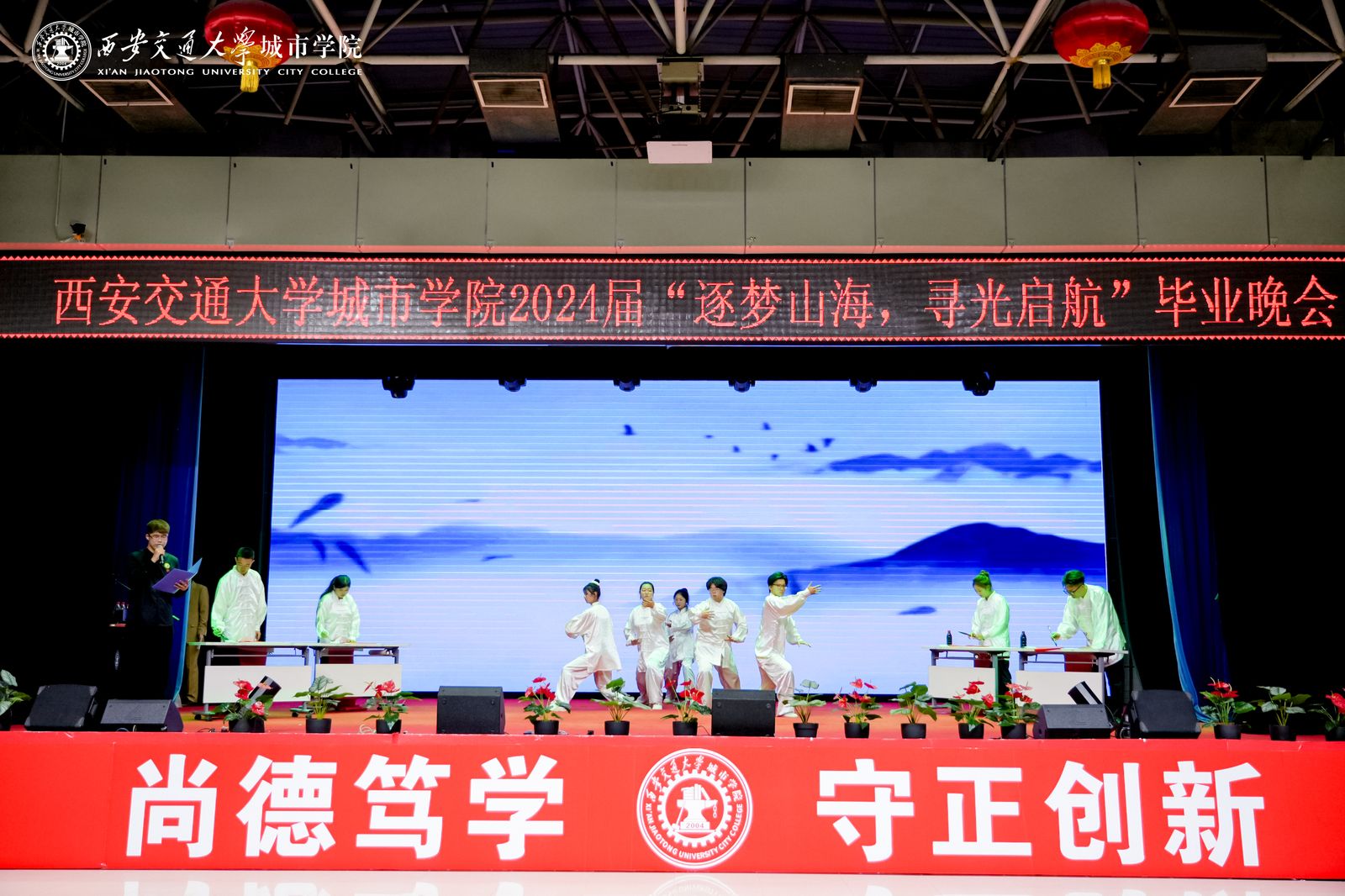 本场晚会分为三个篇章,分别是寻光·筑梦、山海·启航、行志·未来,寓意我校2024届毕业生将奔跑在山海间,寻着光的方向,勇敢逐梦,不断前行!