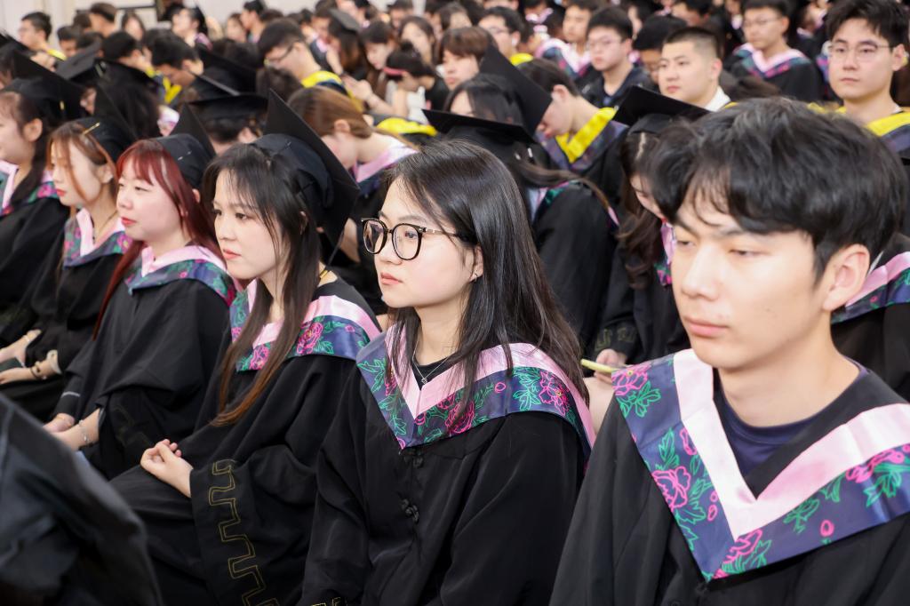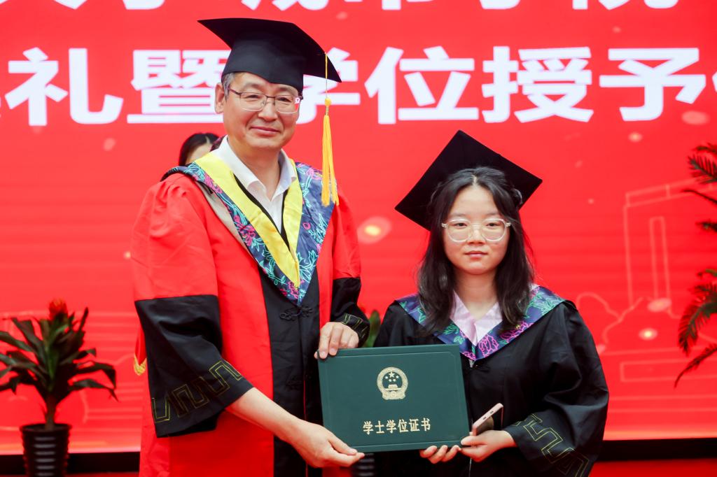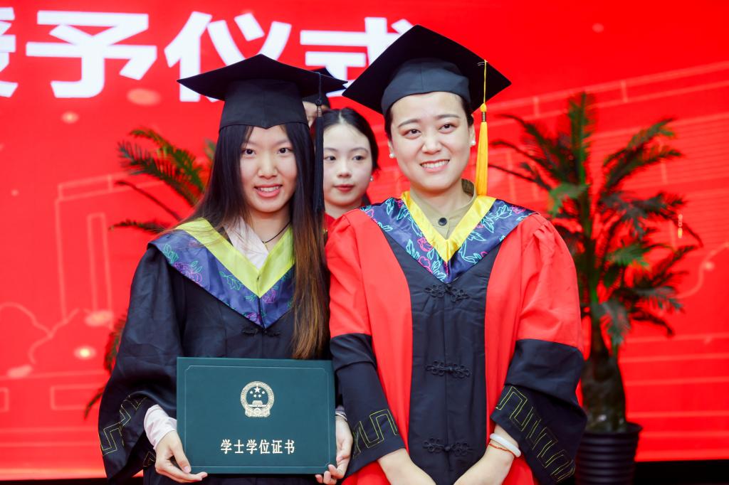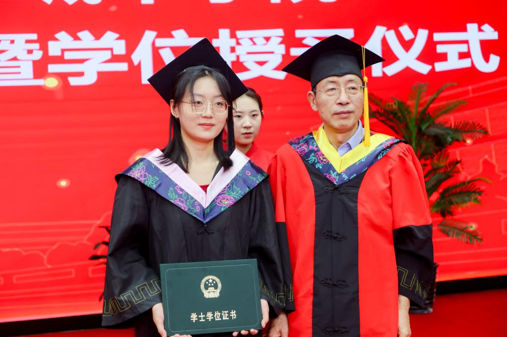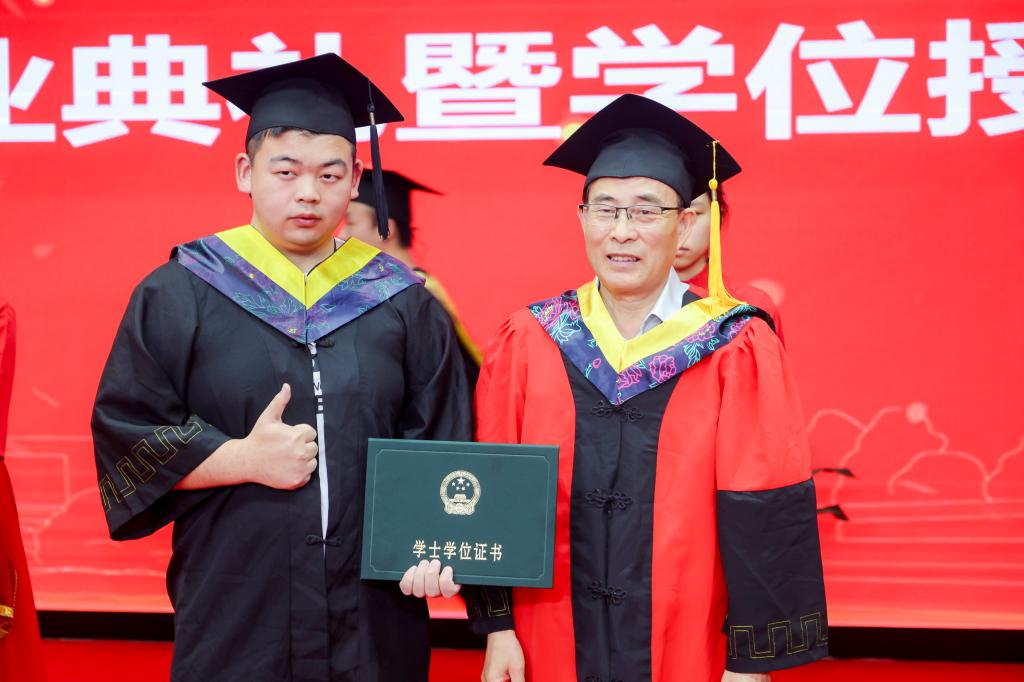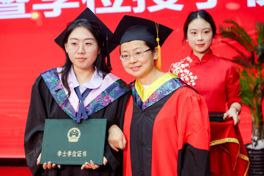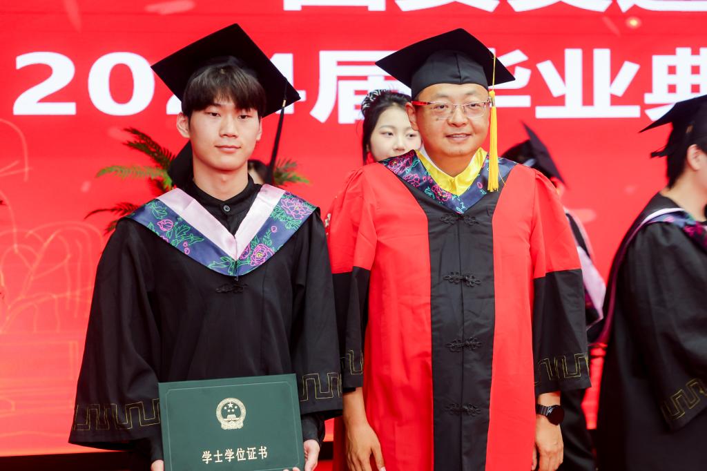 在主席台就座的领导为毕业生颁授了学位证书并合影留念。岳华海副校长主持学位授予仪式。yl7703永利官网2024届毕业典礼暨学位授予仪式在悠扬歌声、师生话别的温馨氛围中圆满落幕。