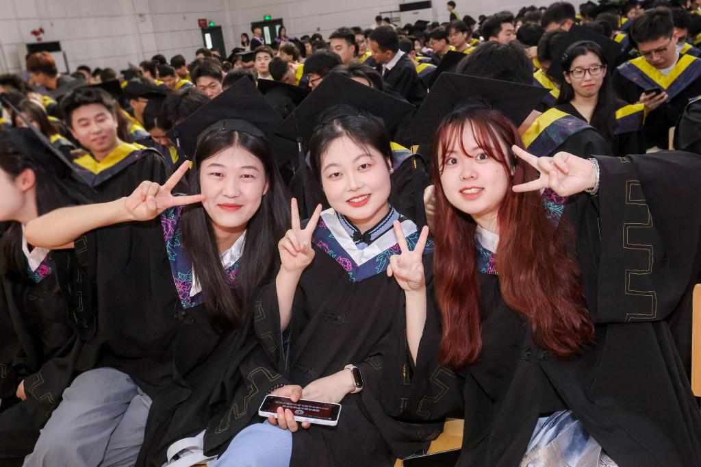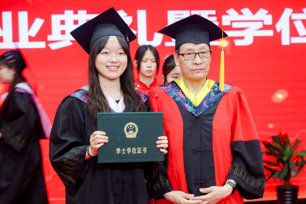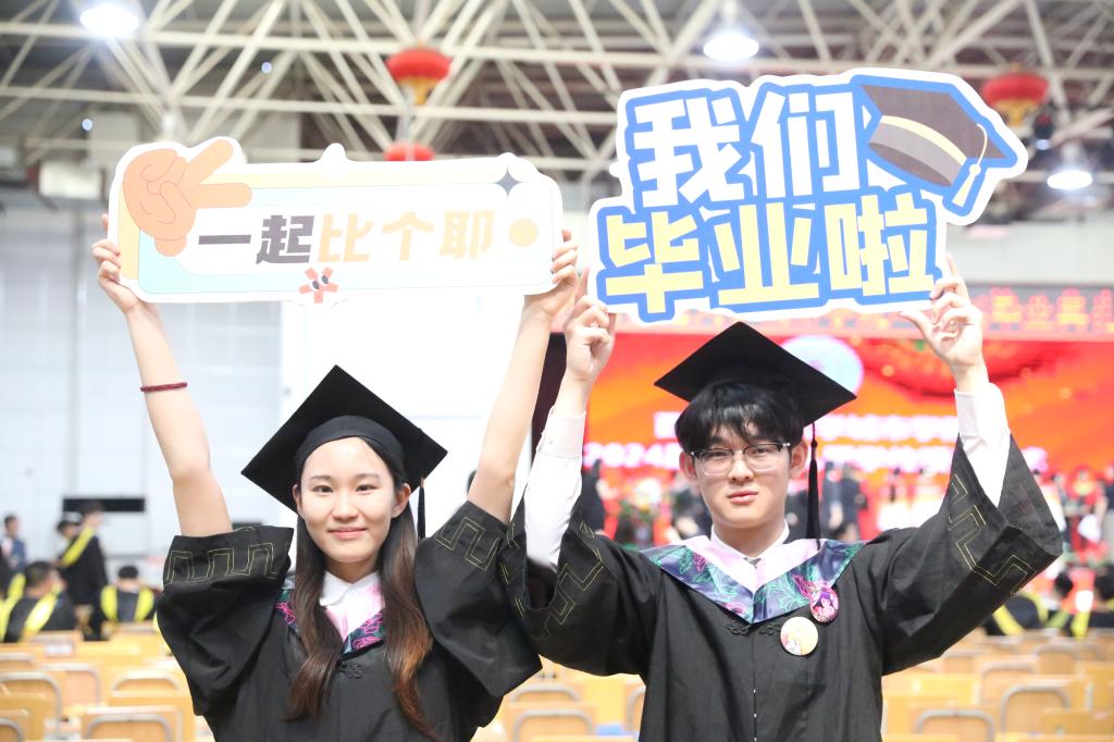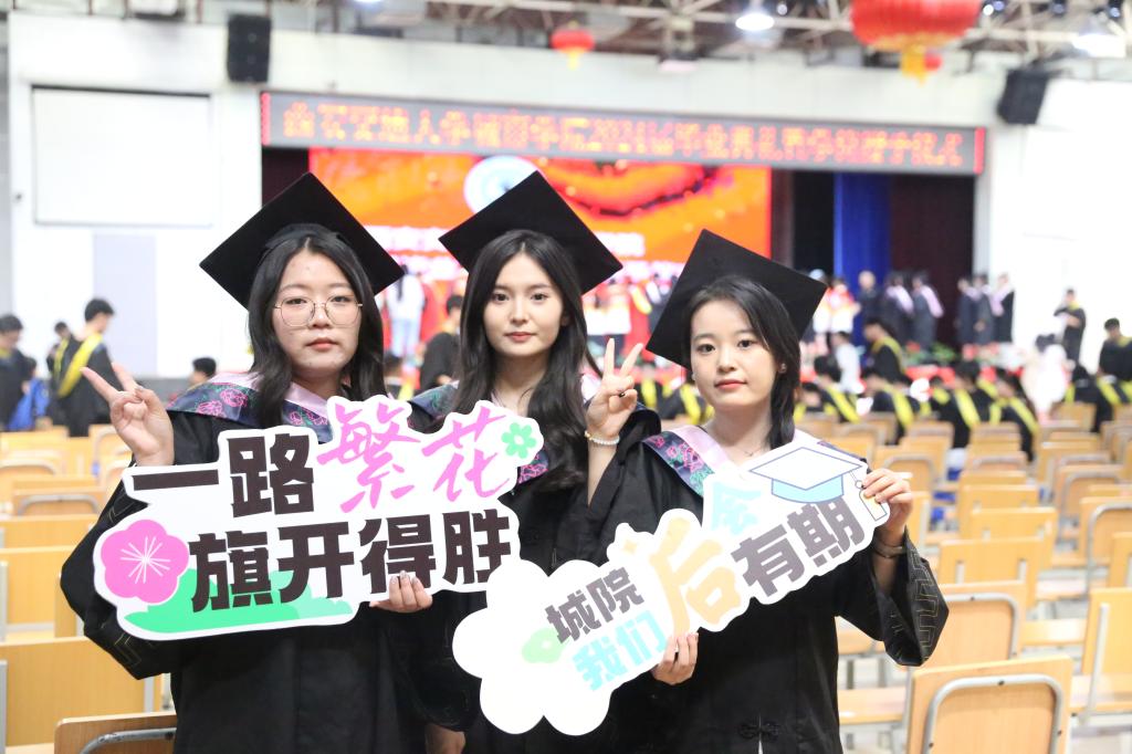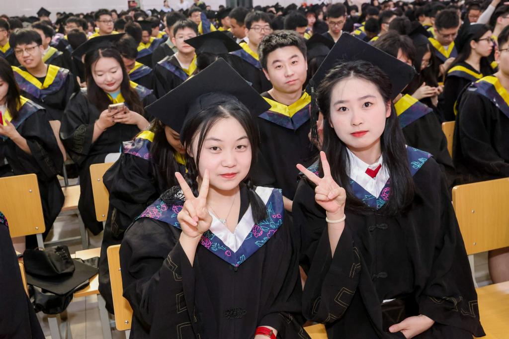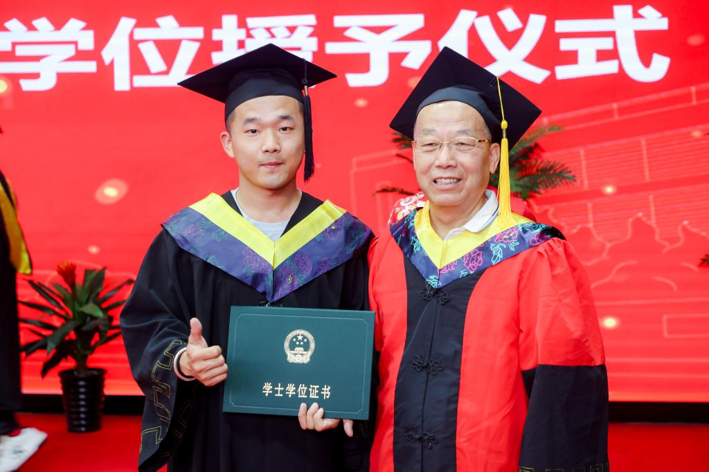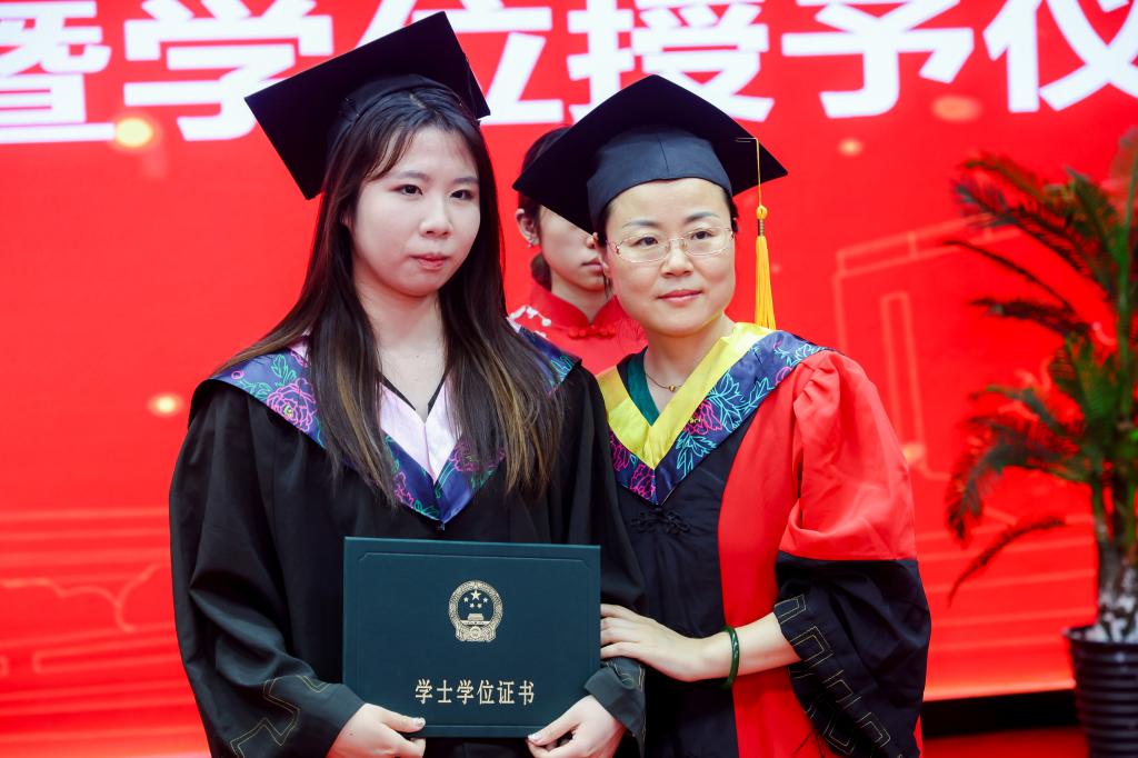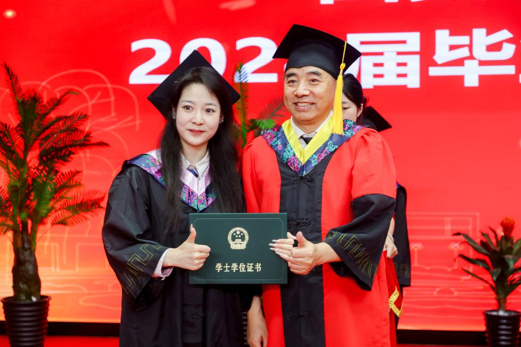 在主席台就座的领导为毕业生颁授了学位证书并合影留念。岳华海副校长主持学位授予仪式。yl7703永利官网2024届毕业典礼暨学位授予仪式在悠扬歌声、师生话别的温馨氛围中圆满落幕。