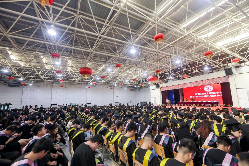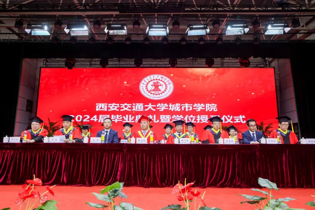 未来你好,追光前行。6月25日上午,yl7703永利官网2024届毕业典礼暨学位授予仪式在大学生活动中心举行。在主席台就座的嘉宾及领导有城市学院学位评定委员会主任、西安交通大学博士生导师梅雪松教授,西安交通大学继续教育管理处高彦处长,yl7703永利官网校长、博士生导师陈光德教授,党委书记张爱萍,副校长朱旭教授,副校长岳华海,教务处处长唐玉海教授,督导组组长阎治安教授及各二级学院负责人。在台下就座并出席大会的还有学校各二级学院(教学部)、处(室)及有关单位主管(含)以上干部、校友代表、教师代表、学生家长代表及2024届全体毕业生。大会由罗兰同学主持。