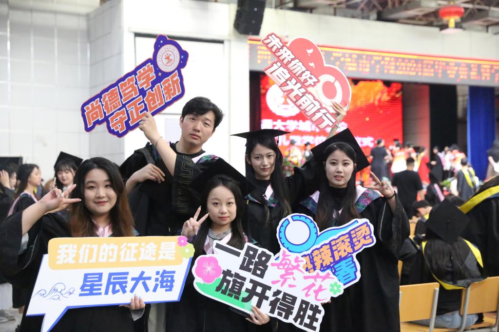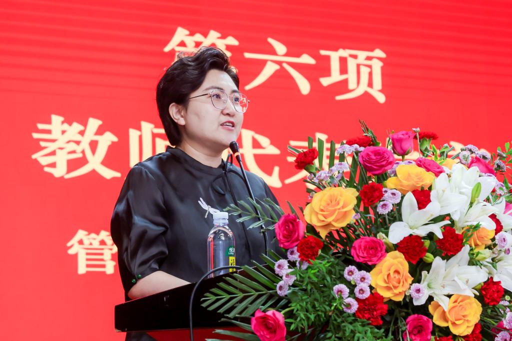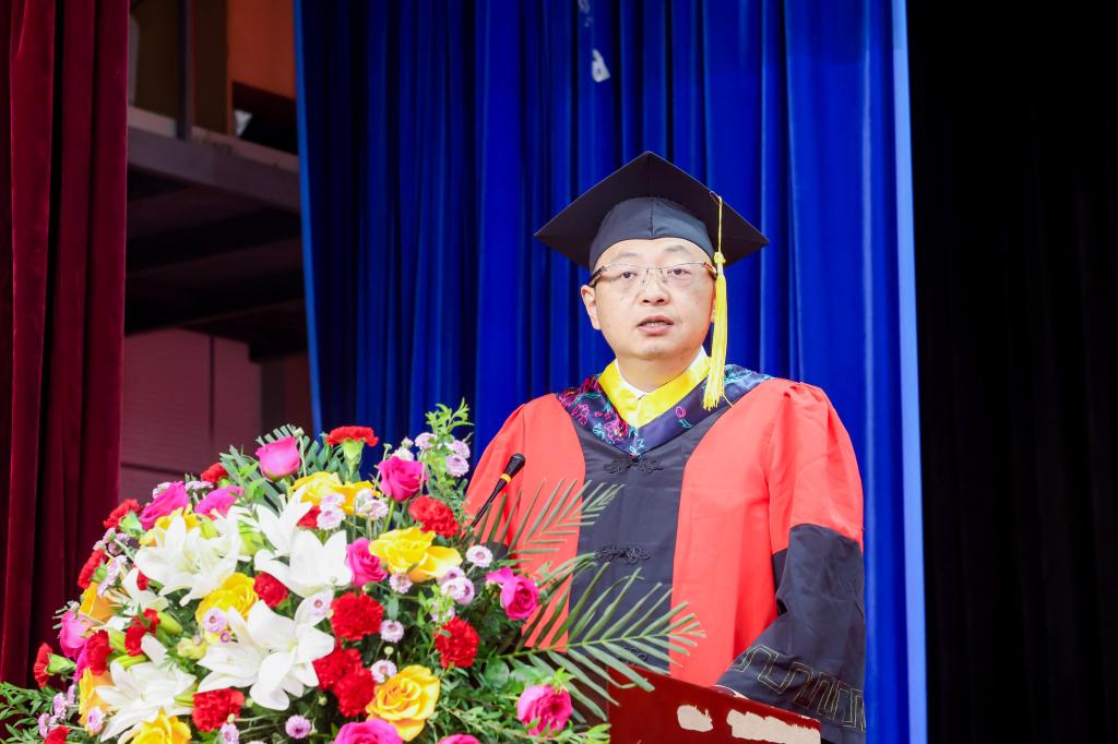 教师代表、管理学院副院长王旭向毕业生们表达了谆谆嘱托与美好希冀。她希望大家恪守正道,永葆初心,慎思笃行,同时要心存感恩,终生学习。希望大家到新的岗位继续发扬“尚德笃学,守正创新”的校训精神、完善自我,用“千磨万击还坚劲,任尔东西南北风”的品质不断超越自我,从点滴小事做起,创造新的辉煌。