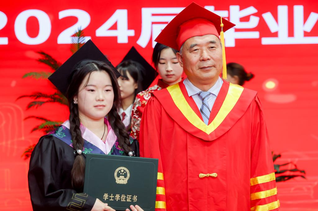 张爱萍书记宣读关于2024届校级优秀毕业生、优秀毕业生干部、学校“就业之星”和“就业积极分子”的表彰决定。授予周亚楠等216名学生为“2024届校级优秀毕业生”称号,授予胡晨雨等72名学生为“2024届校级优秀毕业生干部”称号,授予刘康等14名同学“就业之星”荣誉称号,授予张淑婕等14名同学“就业积极分子”荣誉称号。希望受表彰的毕业生们珍惜荣誉、戒骄戒躁、勇于担当、成就自我、荣光母校,继续创造无愧于时代、无愧于人民、无愧于历史的新的青春业绩。在未来的工作岗位上展现青春作为、彰显青春风采、贡献青春力量,创造精彩的人生。
