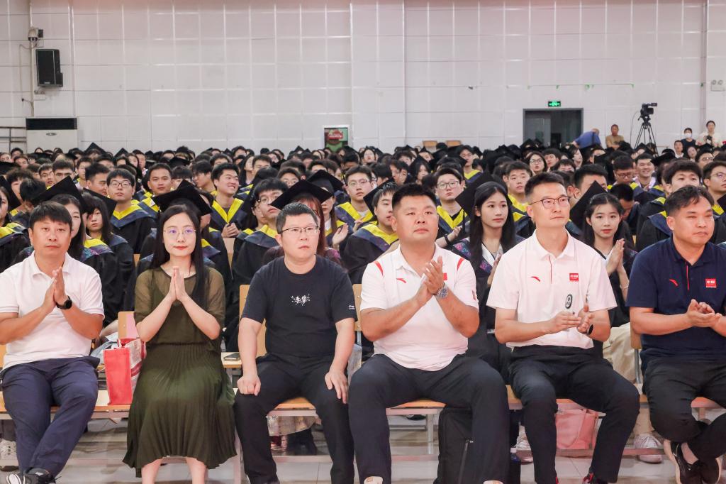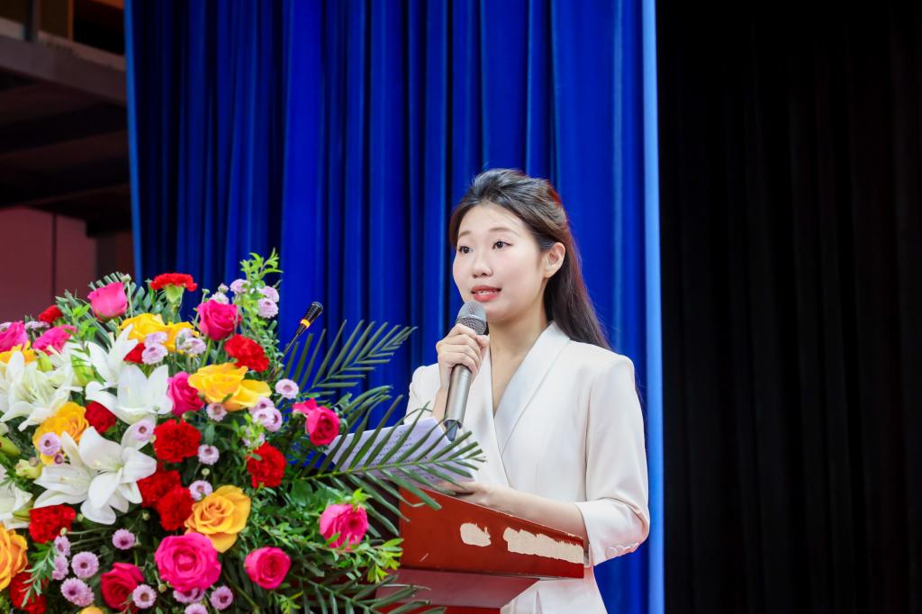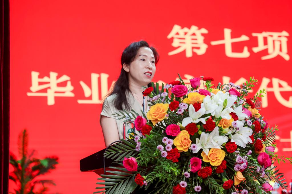 毕业生家长代表宋秀蓉女士向即将展翅高飞的毕业生们送上最真挚的祝福,她希望大家能够继续保持求知的热情和好奇心,能够具备坚韧不拔的毅力和勇气,能够成为有责任感和担当精神的人,能够强健体魄和怀揣感恩之心。毕业不是终点,而是新的起点。她希望大家能够带着母校的祝福和期望,勇敢地追求自己的梦想,书写属于自己的精彩篇章!