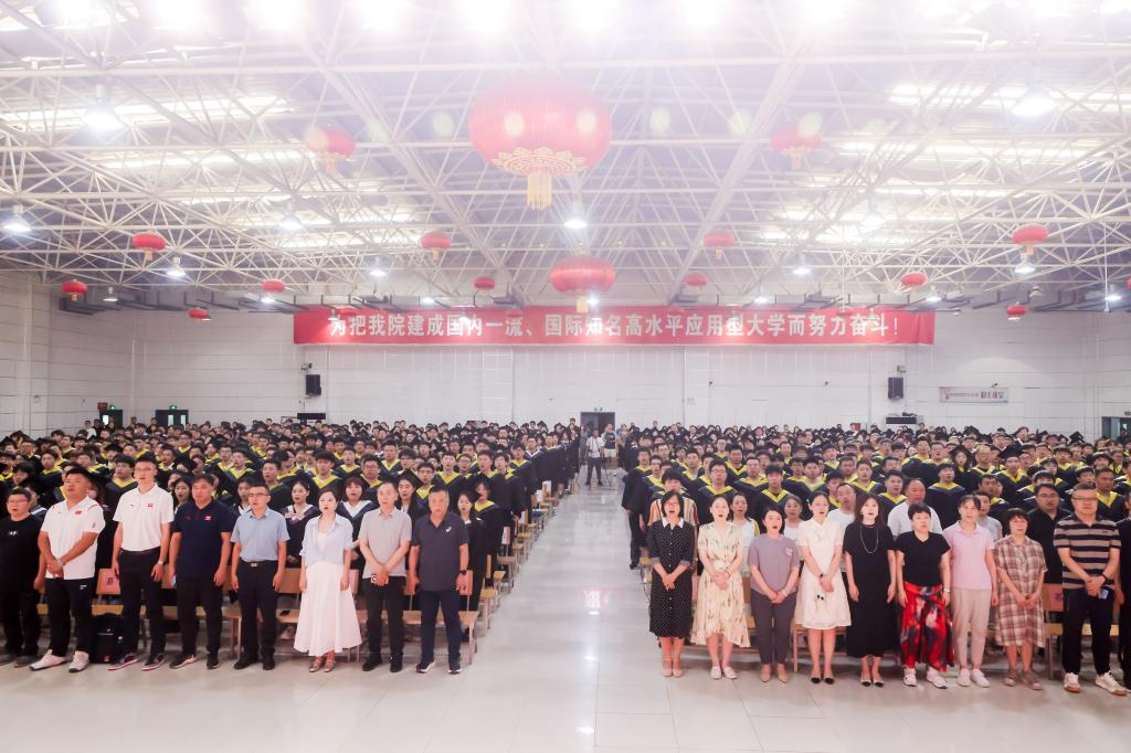 在庄严肃穆的国歌声中,大会正式开始。首先,朱旭副校长汇报2024届毕业生学业及就业情况。他对顺利完成学业,获得本科学士学位的同学们表示衷心的祝贺!他希望大家以“担当”为帆,以“奋斗”为桨,带着新的梦想,砥砺前行!带着赤子之心,勇敢追梦!希望毕业生们胸怀祖国、放眼世界,做坚强快乐的追梦人,做健康勇敢的担当者,取得更大的进步!