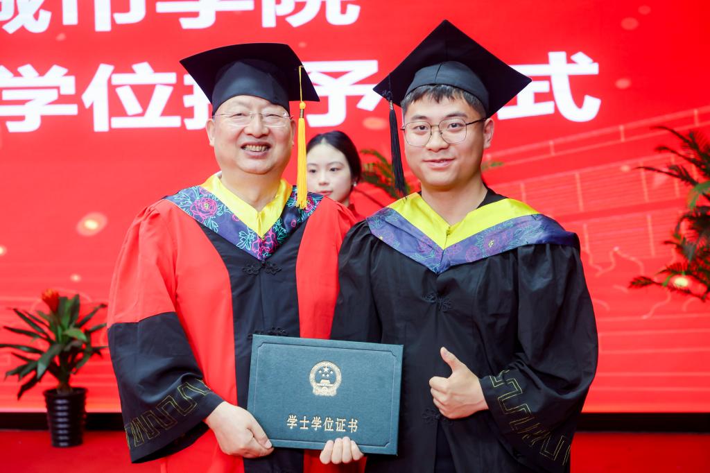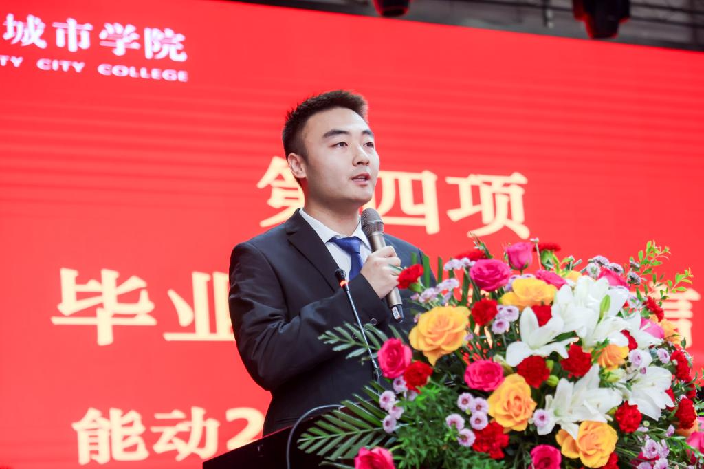 毕业生代表、机械工程学院2020级赵晓鹏同学在发言中用“收获”“担当”“学习”三个关键词总结了自己的四年大学生活,他感谢学校为大家提供的学习求知环境,表示无论走得多远,“尚德笃学,守正创新”的校训都会深深烙印在城院学子的心中,激励大家在追求真理的道路上阔步前行。