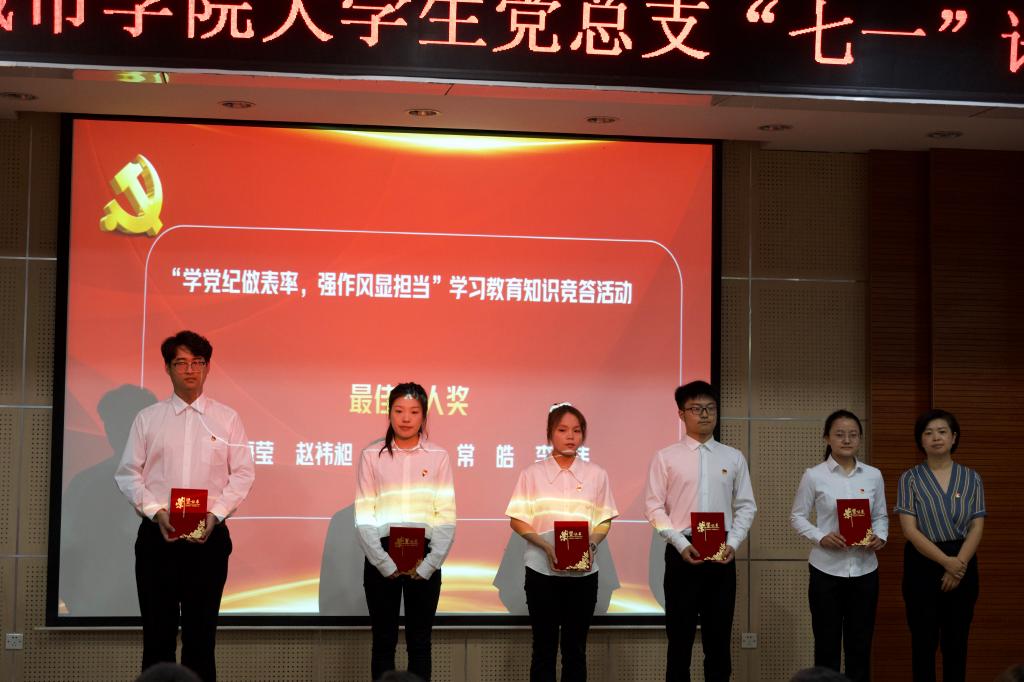 为进一步激励学生党员积极发挥模范带头作用,更大力度发挥学生党支部在学生教育管理中的战斗堡垒作用,6月28日下午,yl7703永利官网大学生党总支在F100举行“七一”表彰大会。学校党委委员、纪委书记袁晓蕾,党委委员兼党总支常务副书记辛红伟,党总支副书记姚敏,党总支委员、校团委书记茹静,各学生党支部书记、支委及学生党员代表参加了此次会议。