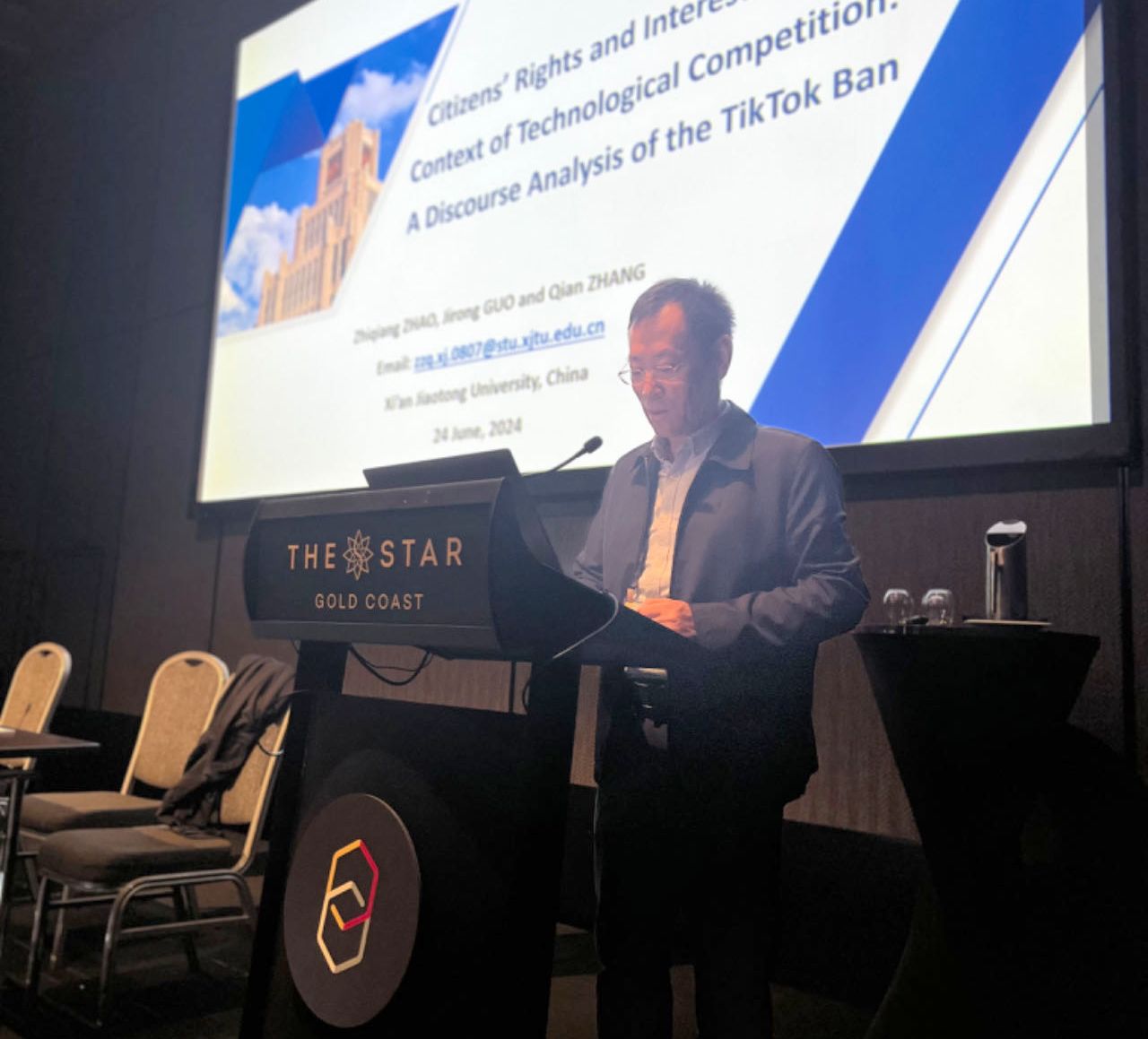 6月20—24日,第74届国际传播学会(International Communication Association,简称ICA)学术年会在澳大利亚黄金海岸(Gold Coast)举行。我校外国语学院院长郭继荣教授参会,并在“Activism, Communication and Social Justice”分论坛作了题为“Discourse Analysis of TikTok Ban: Citizens' Rights and Interests in Technological Competition”发言,得到来自与会专家学者的认可与好评,会后,郭继荣教授与在场学者进行了深入交流与互动。