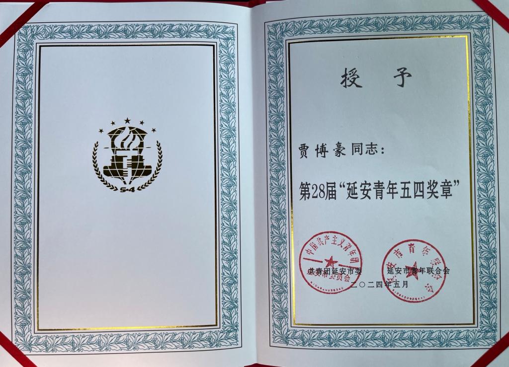 近日,共青团延安市委、延安市青年联合会公布第28届“延安青年五四奖章”表彰名单,延安市共评选出12名获得者,我校艺术与设计学院教师贾博豪获此殊荣。