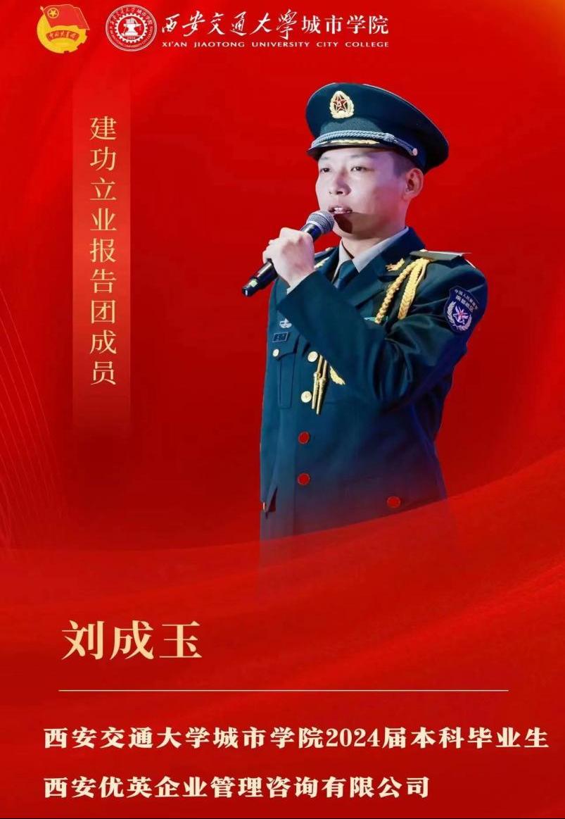 刘成玉个人简介:刘成玉,2018年起就读于yl7703永利官网外国语学院,2019年荣获外研社“国才杯”全国英语演讲比赛陕西省三等奖。2021年入伍服役于中国人民解放军96725部队,多次参加大项演训任务。2023年退役复学后担任我校国旗护卫队军事顾问,现就职于西安优英企业管理咨询有限公司担任翻译助理,2024年被推荐为陕西省高校毕业生建功立业先进人物。