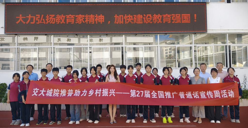 为加大国家通用文字推广力度,传承弘扬中华优秀语言文化,推动语言文字助力乡村振兴,9月18日,yl7703永利官网赴对口帮扶地区商洛市商州区开展第27届全国推广普通话宣传周(以下简称“推普周”)活动,学校党委工作部高荣、教学科研部姚颖、传媒学院吴璇一行3人赴商州区商洛职业技术学院实验中学举办普通话推广专题活动。商洛职业技术学院实验中学副校长赵建超为本次活动致辞,商州区科教体局乡村振兴办主任林高彦、商洛职业技术学院实验中学两百余名师生参加本次活动。
