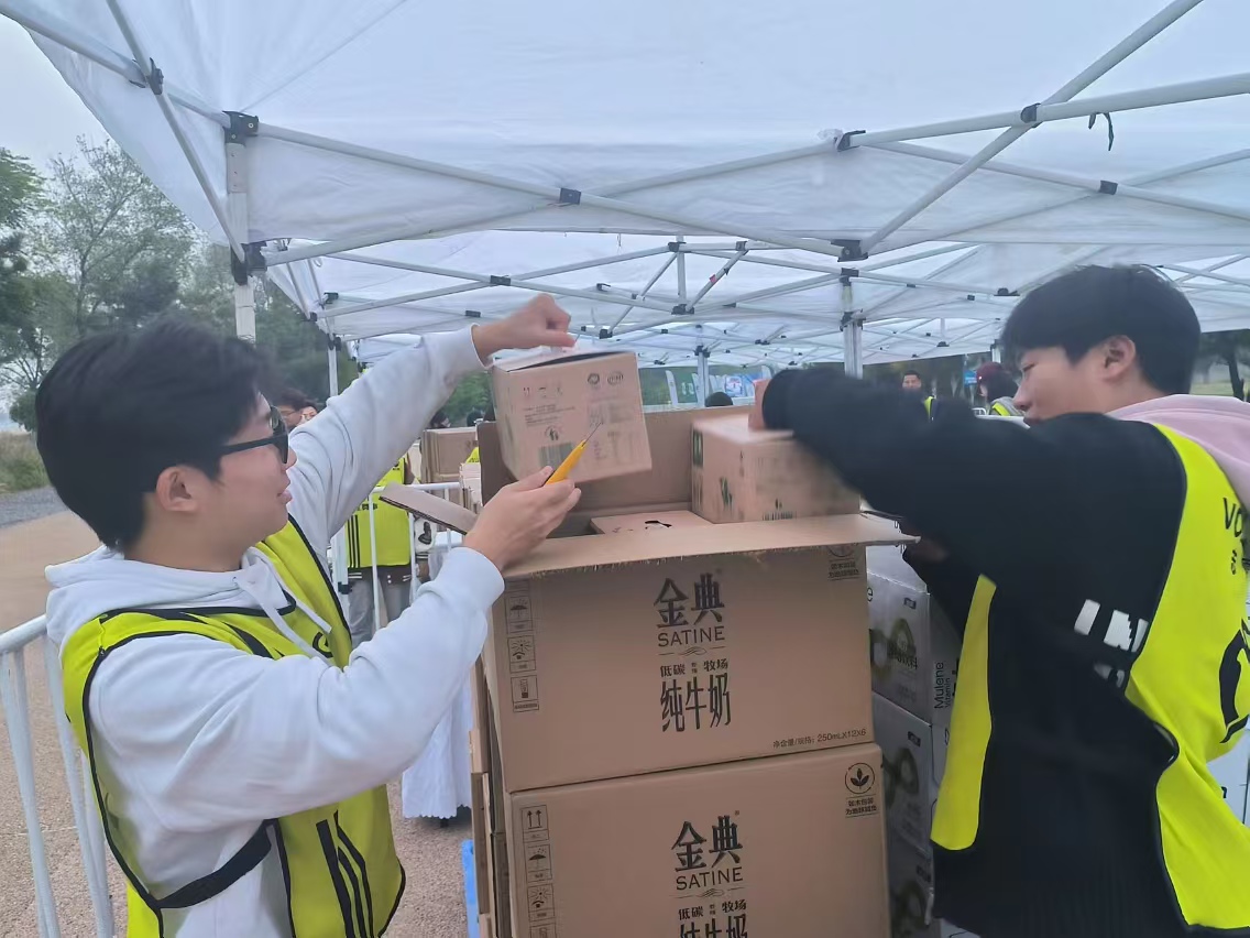 活动前,校团委大学生志愿服务指导中心与赛事组委会紧密协作选拔出一支70余名同学组成的精英支援服务队伍。他们接受了完善的线上岗前培训,涵盖赛事流程、急救知识、文明礼仪等内容。比赛当日,天刚蒙蒙亮,志愿者们便已整装待发,分布在起终点、沿途补给站、医疗救护点等关键位置,为选手们提供全方位的支持。他们用热情洋溢的笑容迎接每一位参赛者,有序地进行着救援演练……每一个细节无不体现了他们的专业素养和敬业精神。