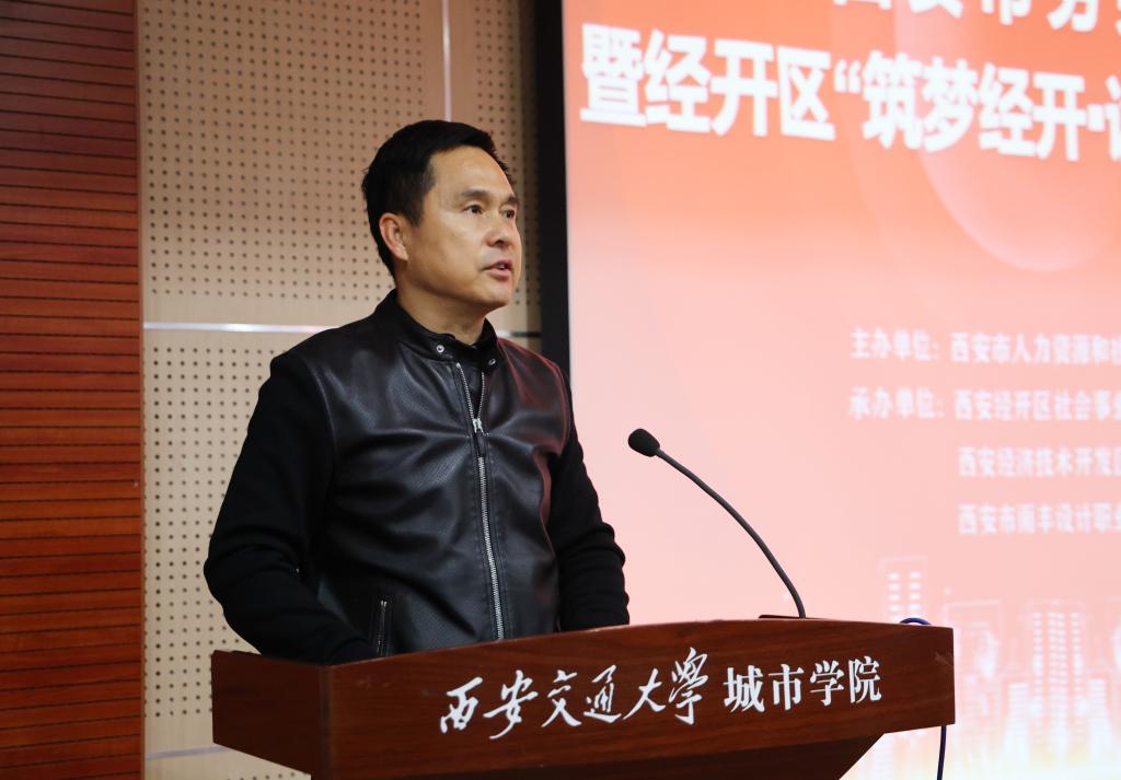 授牌仪式上,西安经开区社会事业服务局副局长高晓辉、学校副校长陈书荣分别进行致辞。