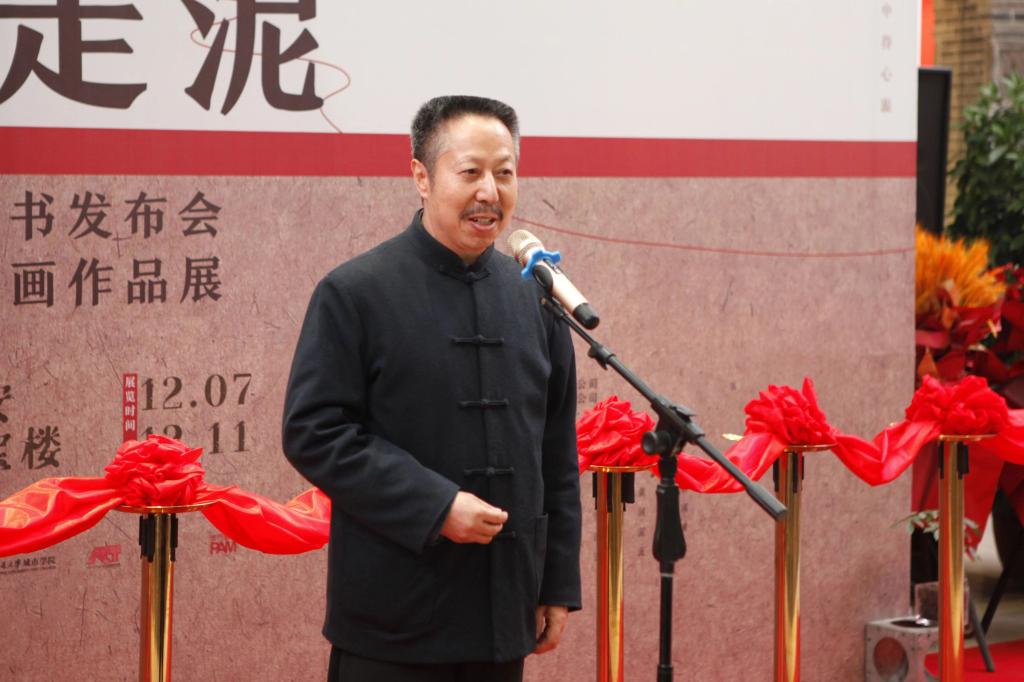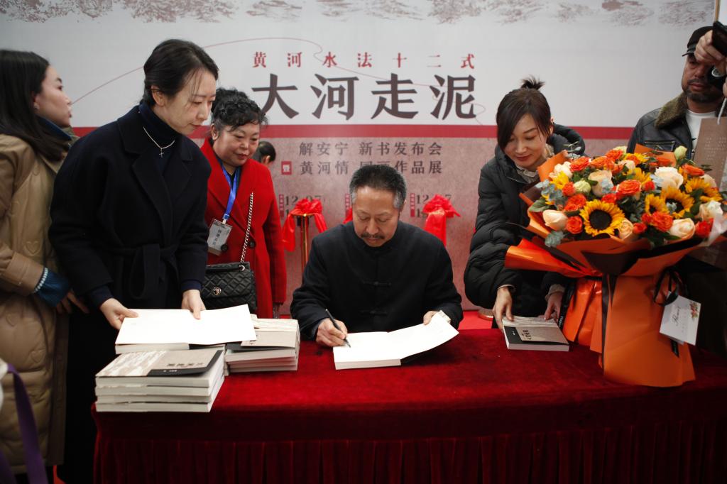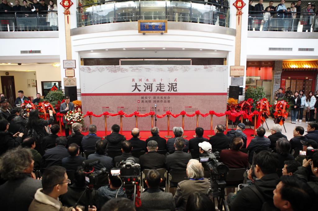 yl7703永利官网艺术与设计学院院长、陕西省美协副主席、陕西省山水画研究会主席解安宁教授的《大河走泥——黄河水法十二式》新书发布会暨“黄河情”解安宁国画作品展,于12月7日在陕西亮宝楼艺术博物馆举行。