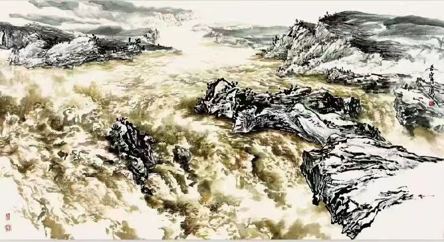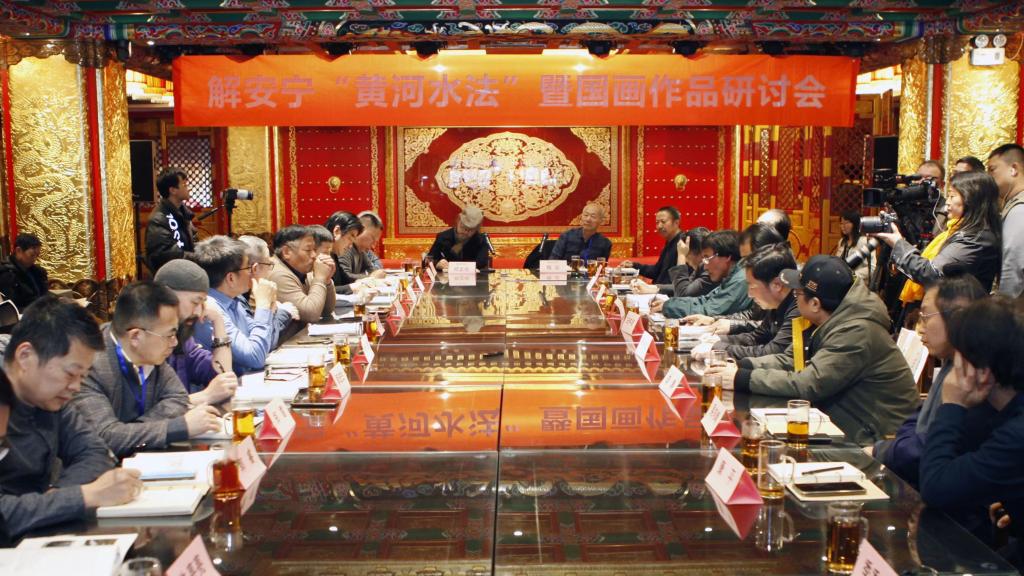 “解安宁‘黄河水法’暨国画作品研讨会”于7日下午召开。学者们对解安宁教授关于黄河水法的观点表示赞同与肯定。认为解安宁教授以黄河瀑布、黄河滈流、黄河逆流、黄河湍流、黄河激流、黄河滃流、黄河急流、黄河涌流、黄河湾流、黄河泥流、黄河滩流、黄河远流十二种水流的绘画技法,并对其山水画创作为中国当代山水画的探索空间提供应有的启示性和可能性。会上专家学者围绕黄河文化的艺术呈现与传承创新各抒己见,展开了一场高水准的学术研讨,这不仅为黄河文化传承注入新活力与深刻内涵,搭建起前言学术交流平台,深入探索中国画艺术难题,更让黄河在当代笔墨中鲜活呈现。