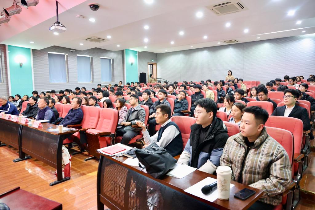 廖红建介绍了景辉教授在延安新区建设中的贡献。严红昌校长在致辞中表示延安新区建设在统筹新老城区发展上成效显著,提升了城市功能,增强了延安人民的幸福感。他鼓励同学们认真聆听报告,立志回报社会。