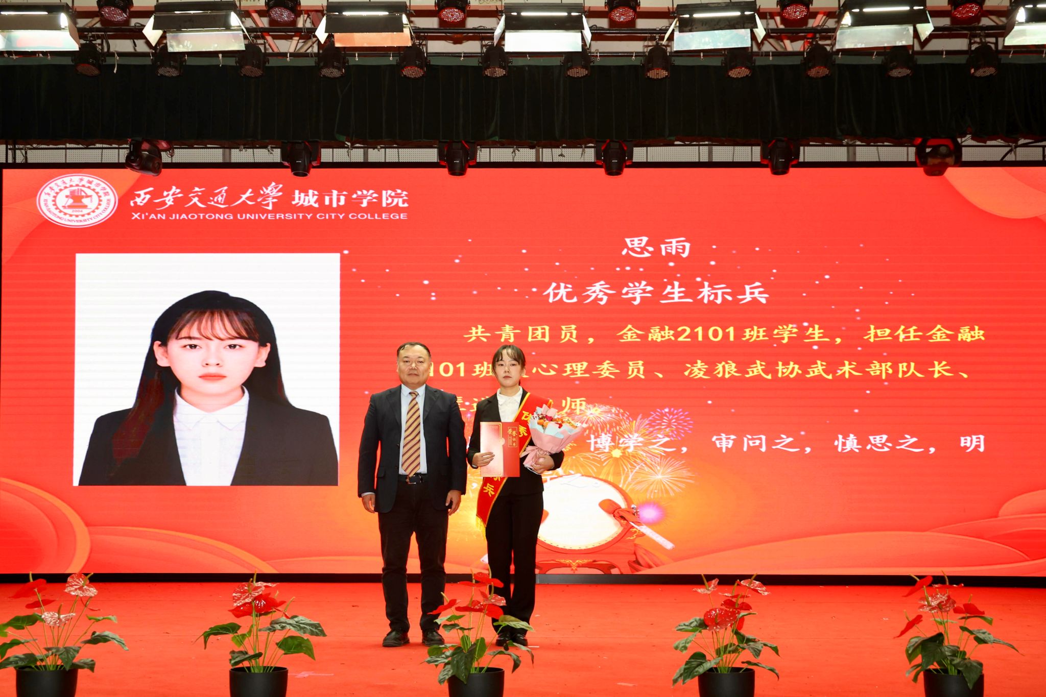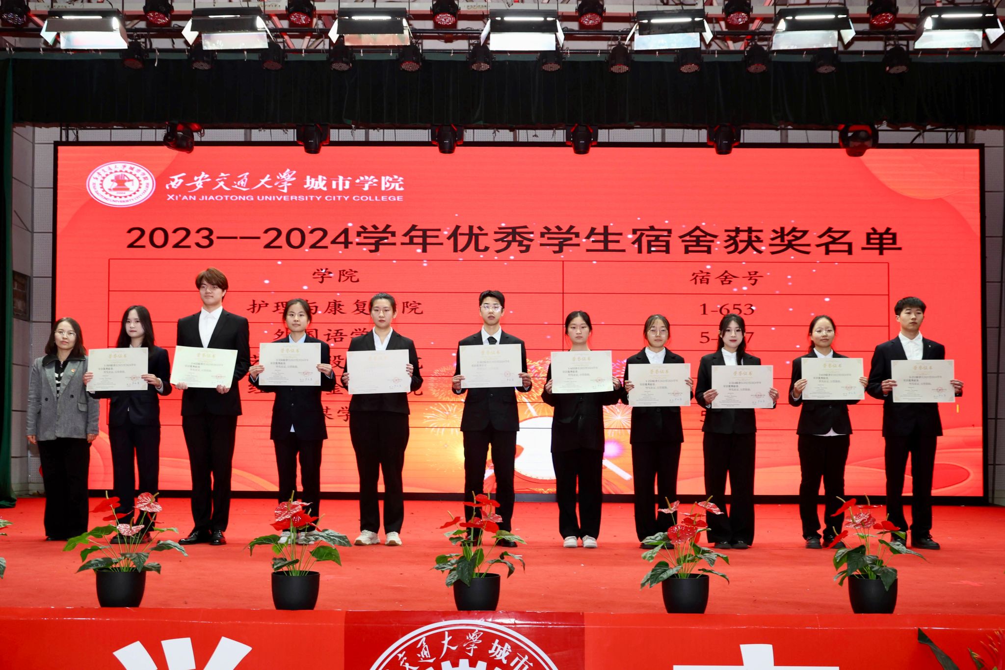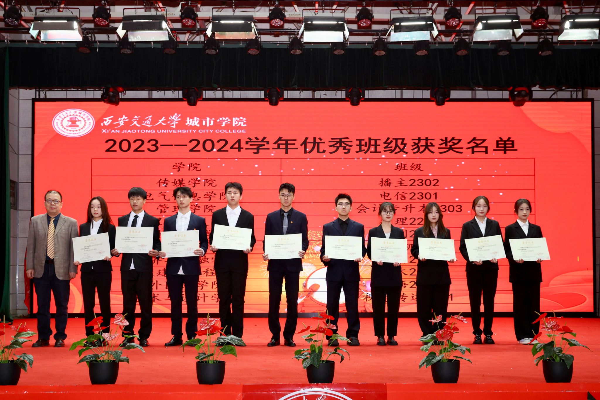 12月12日下午,yl7703永利官网在大学生活动中心举办2023-2024学年优秀学生表彰大会。校长严红昌、党委书记张爱萍、副校长陈书荣、副校长朱旭、副校长岳华海、工会主席许恩奇、纪委书记袁晓蕾,陕西奇点品牌策划有限公司、明见万里品牌和学子制品牌联合创始人罗芬女士,陕西怡兰企业集团有限公司副总经理刘文君女士以及各二级学院(教学部)、各部(处)负责人出席大会。全体辅导员、部分教师代表、班主任代表、获奖学生代表参加表彰大会,大会由播主2402高旭敏同学主持。