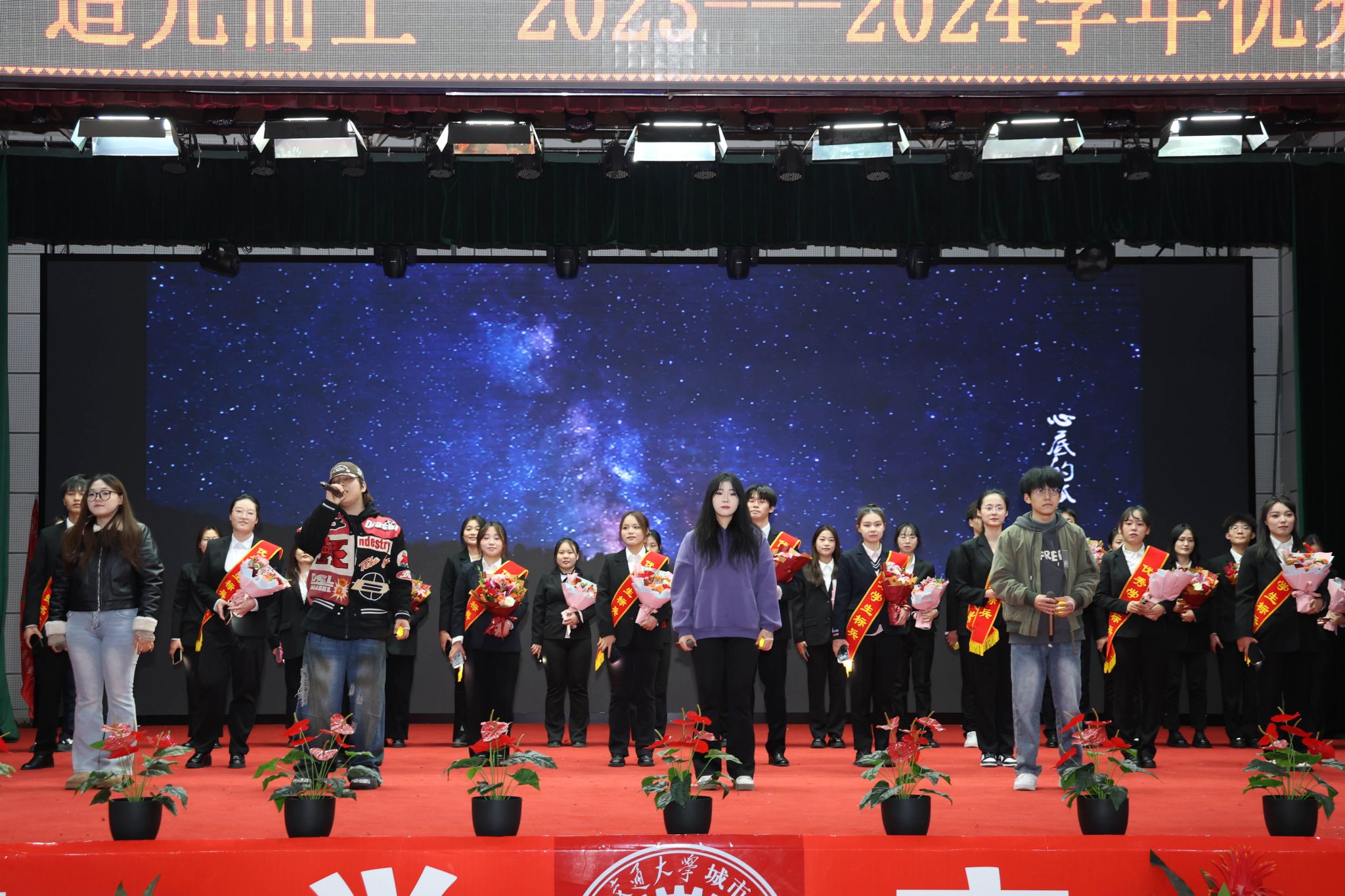 伴随着嘹亮的国歌声,表彰会正式拉开序幕。党委书记张爱萍宣读了2023-2024学年优秀学生、先进集体的表彰决定。学校向刘轩缘、杜彧童、思雨、马毅琳、叶泽瑞5名学生授予“优秀学生标兵”称号,向史梦鸽等5名同学授予“优秀学生标兵提名奖”称号。同时,学校表彰了王祎川等26名国家奖学金获得者、王前等309名“国家励志奖学金”获得者,授予赵星月等1927名学生“优秀学生”称号、杨泽远等237名学生“优秀学生干部”称号、李佳琦等182名学生“社会活动积极分子”称号、马卓凡等238名学生“学习进步奖”称号、张智坤等14名学生“志愿服务与公益奖”称号,向叶禾霖等5名学生颁发席酉民“创业与竞争力”新星奖,向张如玉等4名学生颁发怡兰奖学金、杨凯晟等6名学生颁发奇点奖学金、赵鑫悦等16名同学颁发筑梦奖学金。同时授予财管2201班等41个班级“优秀班级”称号、3号公寓211宿舍等66间宿舍“优秀宿舍”称号、“弈术辩论协会”等12个社团“优秀社团”称号。随后,与会领导分别为获奖个人和集体颁奖。