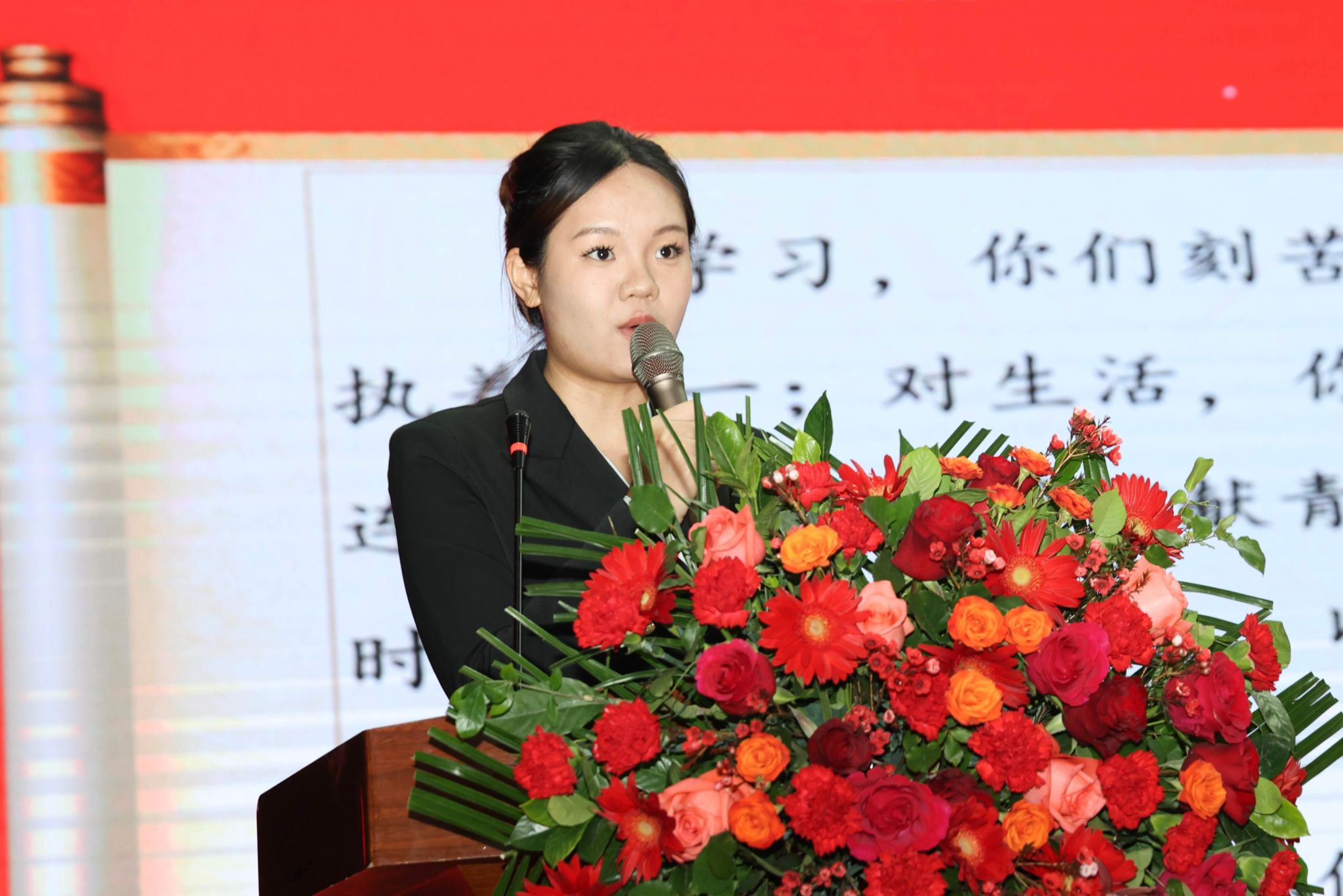 师恩如山,学生们的成长离不开学校的教育培养,离不开老师们的教导陪伴。获奖学生代表现场向参会老师敬献了鲜花,答谢师恩,并带来朗诵《写给未来的你》和歌曲《夜空中最亮的星》,以行动激励全体同学积极践行“尚德笃学,守正创新”的校训,不负父母的叮咛、不负学校的嘱托、不负时代的期盼,勤学善思长本领、创新奋进绽芳华。