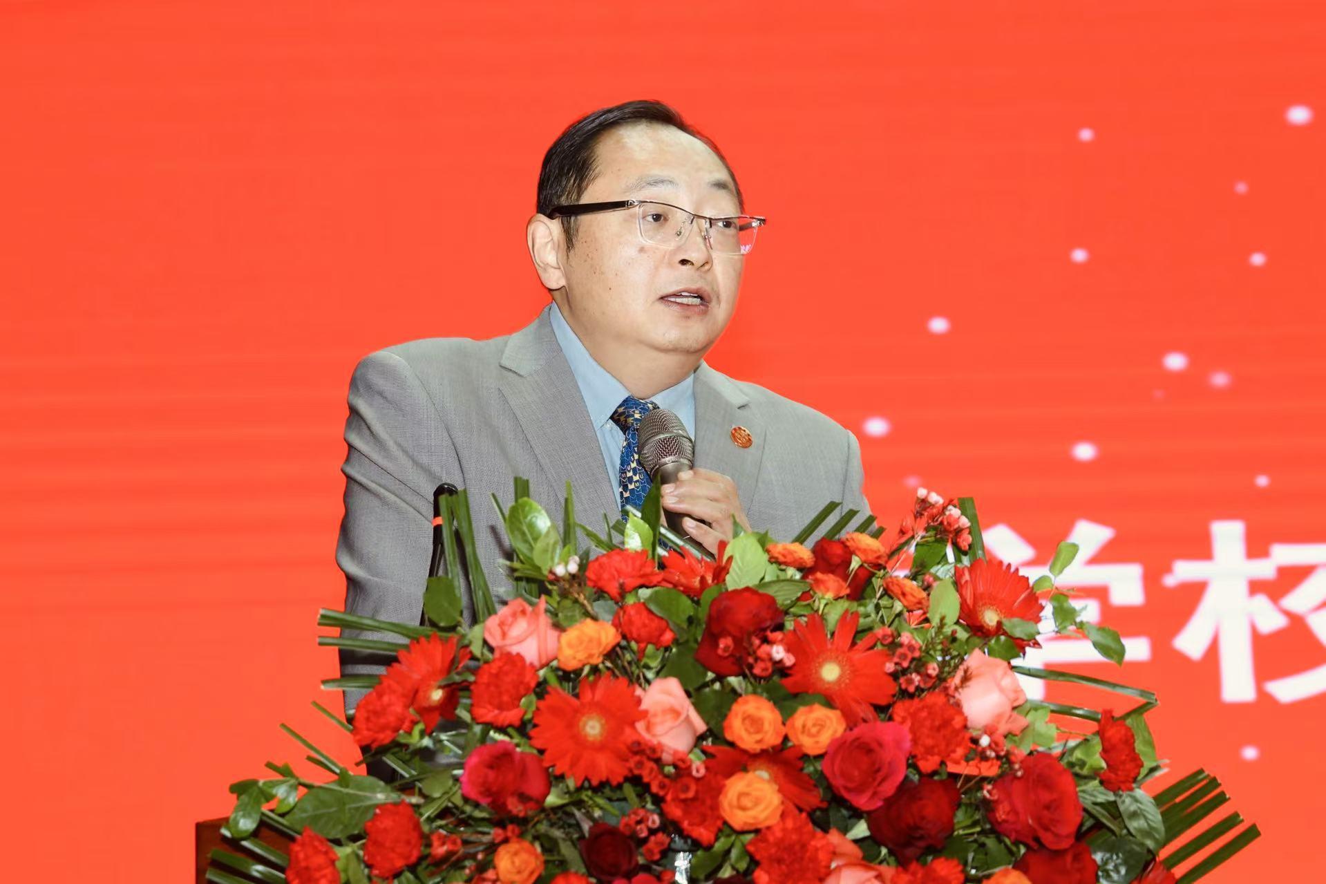 校长严红昌在讲话中对获奖同学和集体表示祝贺,对教职员工的辛勤付出表示感谢。他对同学们提出了几点希望:一是不忘初心,锤炼高尚品德。尚德是做人之本,希望同学们加强自我修养,提升道德境界,坚守内心的灯塔,让品德之光照亮前行的道路。二是不畏困难,深耕学业之路。笃学是成才之路,希望同学们坚持不懈的努力,下苦功夫,求真学问,珍惜当下的每一分每一秒,用心去感受学习的乐趣和价值。三是不负青春,淬炼实干担当。守正是立身之基,希望同学们能够坚守正道、秉持正义,脚踏实地、真抓实干,做有理想、敢担当、能吃苦、肯奋斗的新时代好青年。四是不负时代,践行创新发展。创新是进步之源,希望同学们要敢于突破传统思维,善于发现问题,勇于提出问题,并尝试用新的方法解决问题。