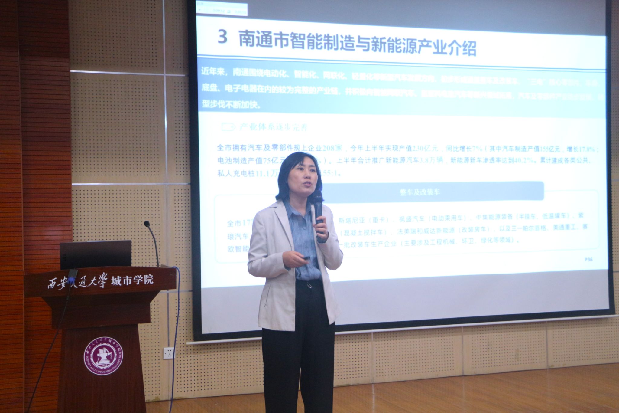 李波波博士从硬科技与增材制造、南通市智能制造与新能源产业介绍、南通市就业政策解读、大学生就业形势分析四个方面展开深度解读。在硬科技专题中,她通过3D打印卫星发动机涡轮叶片等典型案例,阐释了增材制造技术对高端装备产业的颠覆性革新。她重点剖析了南通市船舶海工、智能电网、新能源三大千亿级产业集群发展现状,介绍了南通市人才新政策等激励措施。面对当前就业形势,她建议学生构建“技术+管理”复合能力,关注工业互联网、新能源储能等新兴领域。