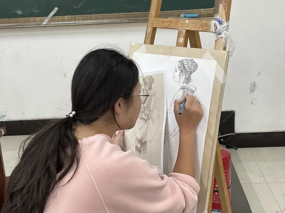 而压力让贝新瑜有了更多的动力,她认为要想变得优秀,除了比别人多一分努力别无他法。“从大一起我就注重打基础,每次会在课堂上认真做好笔记,课后及时复习,梳理重点,并且除过老师布置的作业外,我每次都会多画一些,一周差不多画三四本速写书。”她提到。