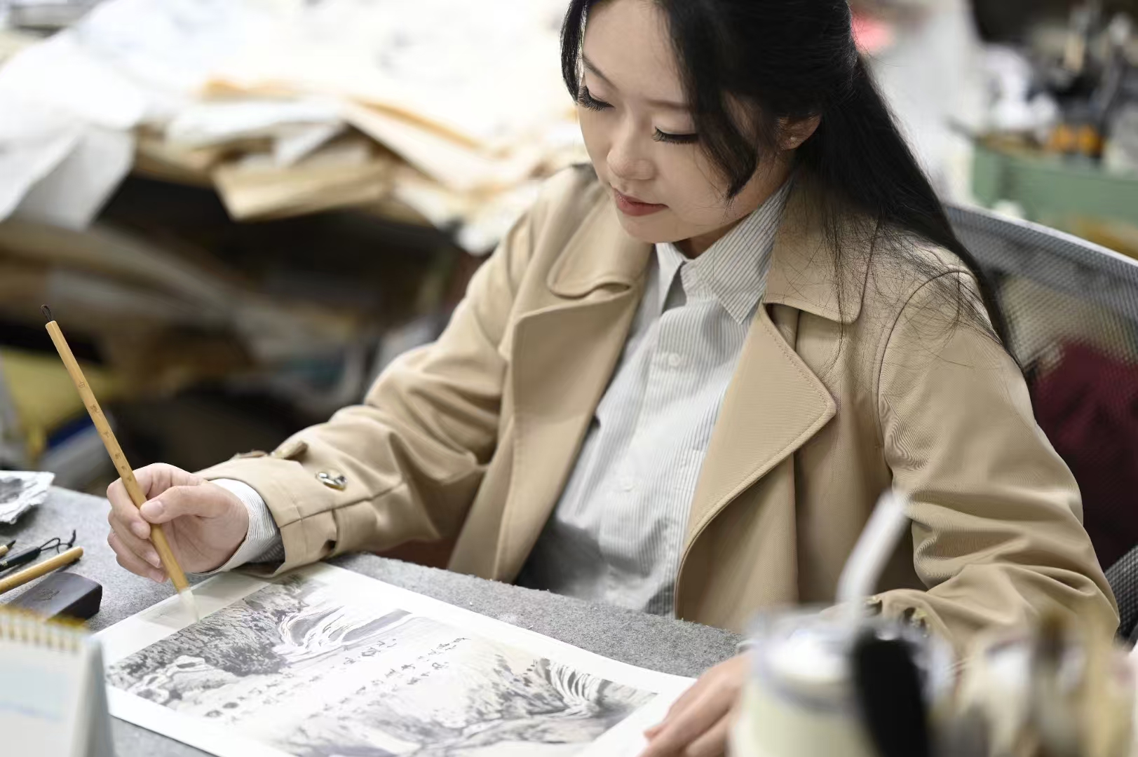 她最喜欢国画里边的山水画。“山水画历史悠久,不仅描绘锦绣山河,最重要的是可以寄情于景、借物喻人、传达情感、寄托志向。”贝新瑜表示,“我最喜欢的是《庐山高图》和《千里江山图》,它们不仅画出了大好河山,更寄托了高远理想。”