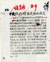 1941年7月1日,中共中央政治局通过的《关于增强党性的决定》(部分)。(中央档案馆藏)