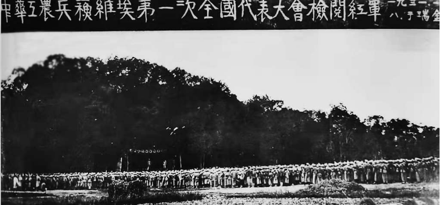 1931年11月,中华工农兵苏维埃第一次全国代表大会主席团在瑞金检阅红军。资料图片