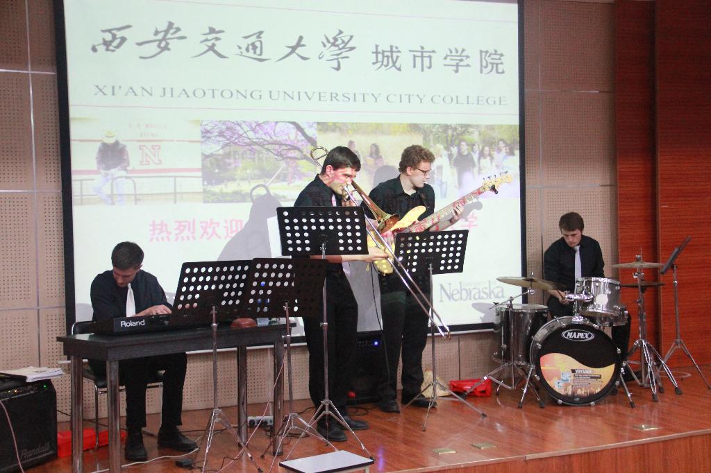 下午两点半,来自美国内布拉斯加林肯大学的爵士乐团来我校进行交流并带来精彩演出。