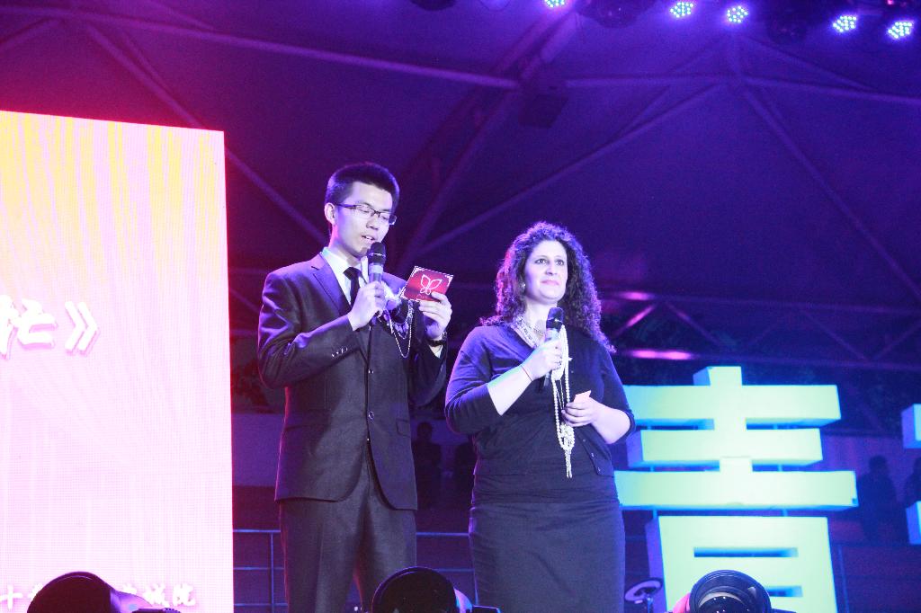 2014年5月11日晚,中美项目办外教Amy同我校主持人联袂主持了校庆十周年联欢会,与在场的众多师生领导共同欢祝我院建院十周年。