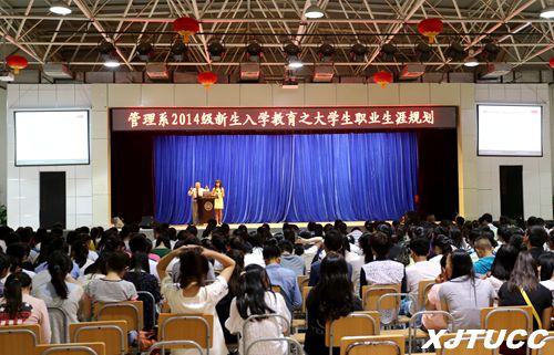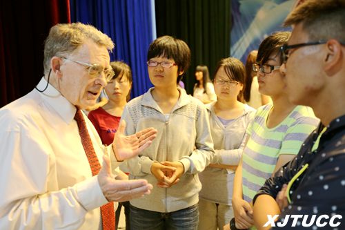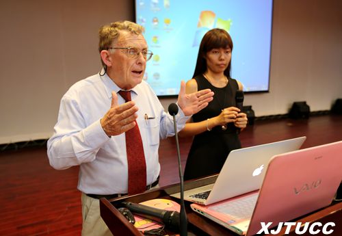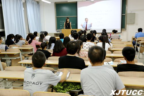 在两天短暂的行程中,Michael教授还分别对管理系、经济系和外语系的2014级新生进行了主题为“全球国际化”的演讲,指出由于目前中国在世界经济领域中地位的提升,未来更需要熟练掌握中文和英文的国际化人才,通过中加2+2双学位项目的留学经历和中英双语的专业学习,学生们可以提升自身的全球竞争力,更好地发展成具有国际视野的应用型人才。